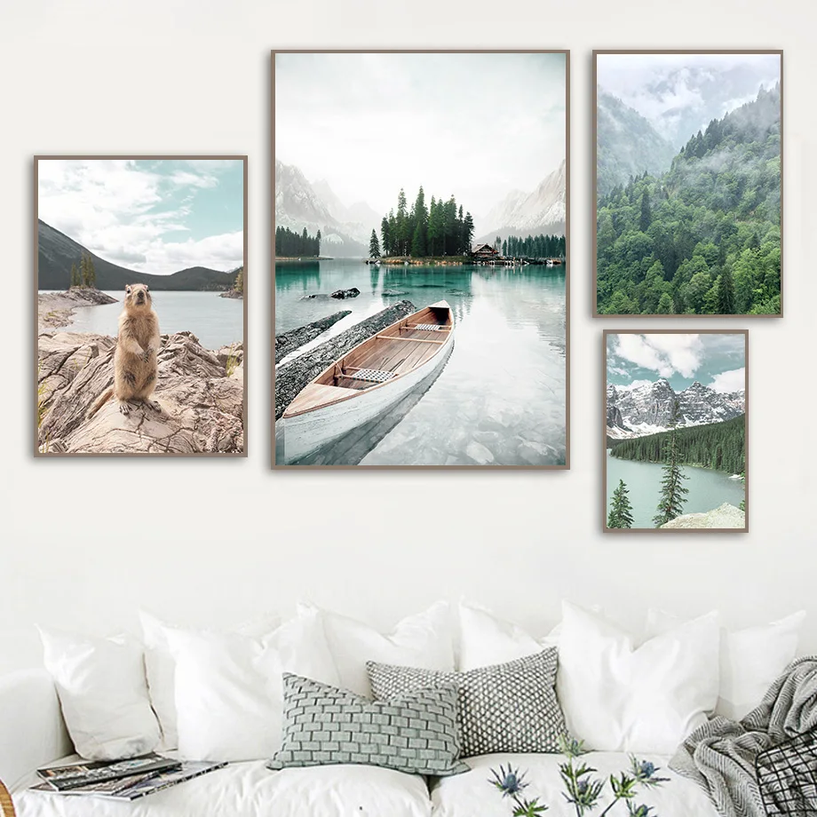 Картина на стену с изображением леса, озера, бобра, картина горная ...