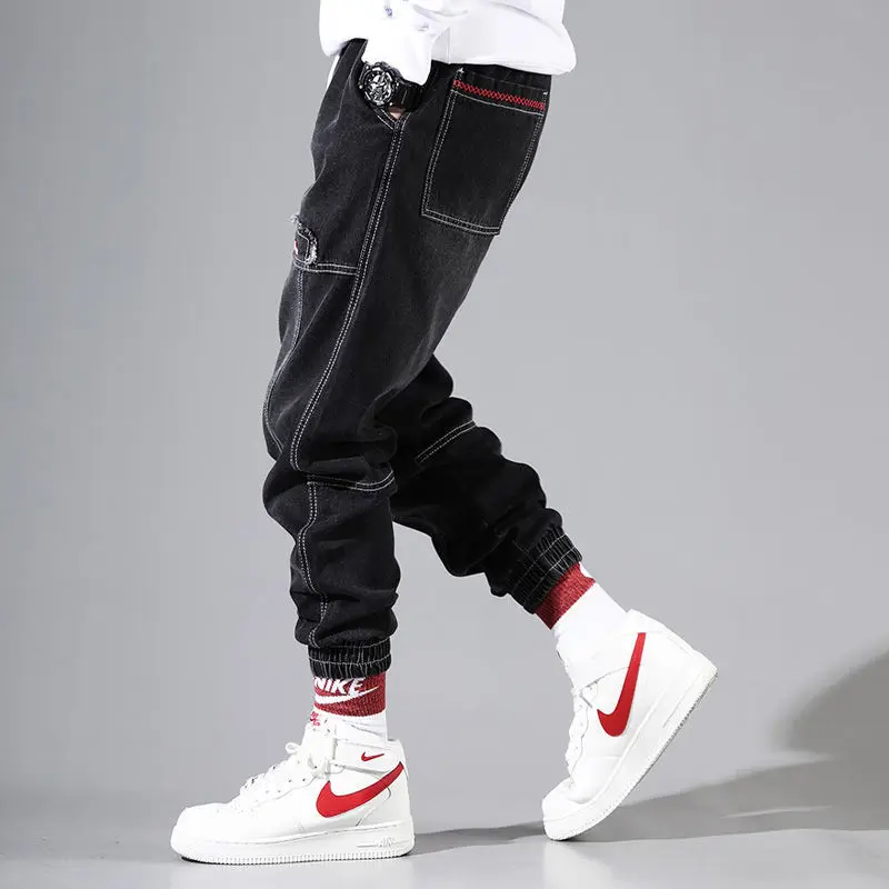 Джинсы-шаровары мужские свободного покроя, джоггеры из денима в сти...