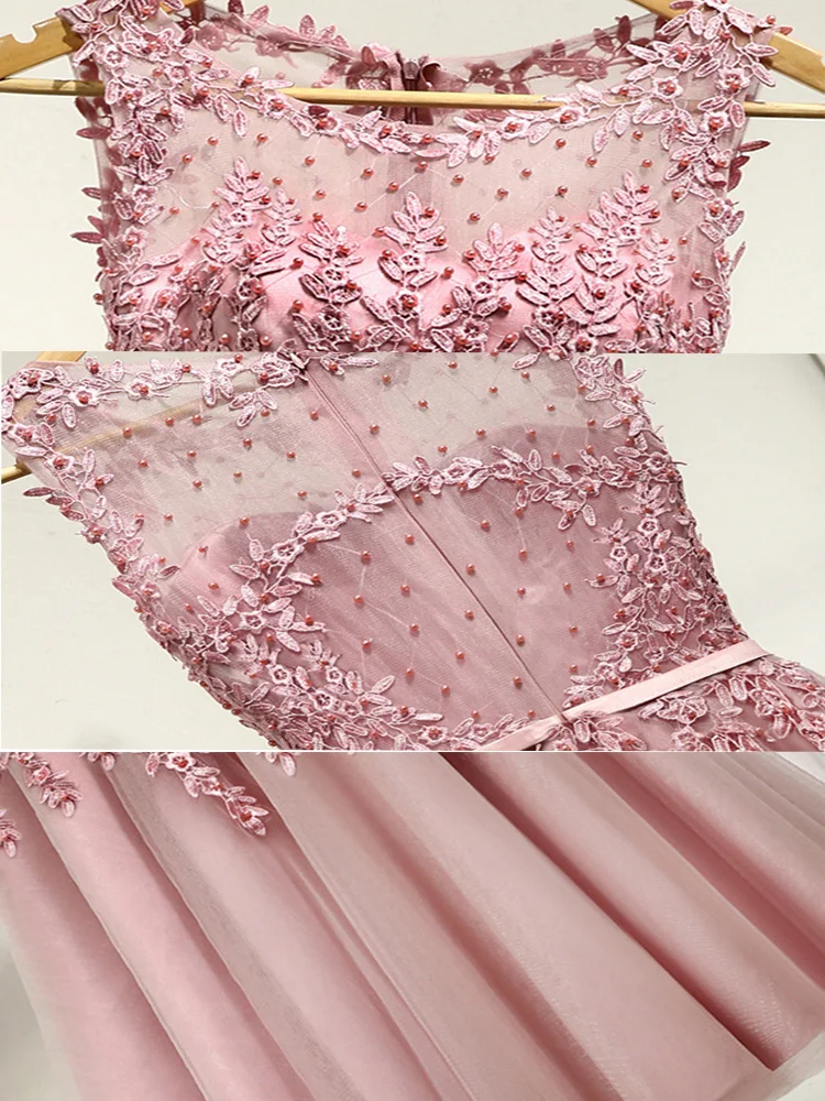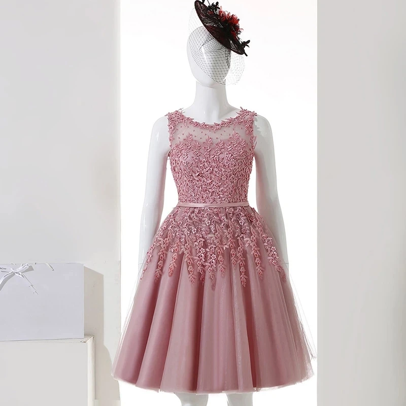 Выпускные платья с вышивкой Бисер Иллюзия Короткое свадебное Формальное аппликации цветы по колено вечерние платья платье партии Femme
