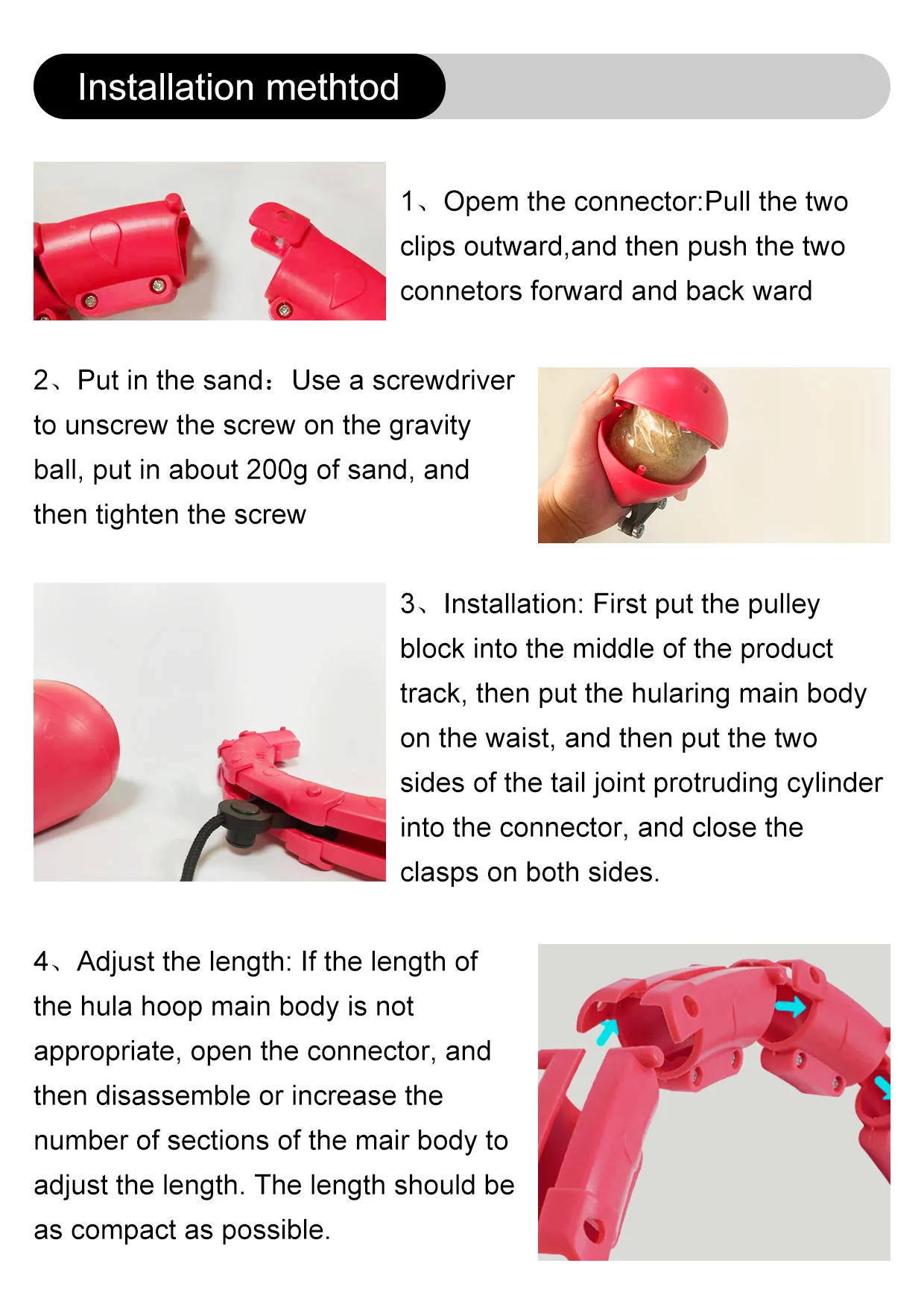 Утяжеленное кольцо для фитнеса состоит из 24 съемных частей диаметром 120 см/47,24 дюйма, которые можно разобрать одним нажатием кнопки; вы можете выбрать свое собственное умное оборудование для упражнений в соответствии с окружностью талии, практичным и внимательным дизайном для вас
