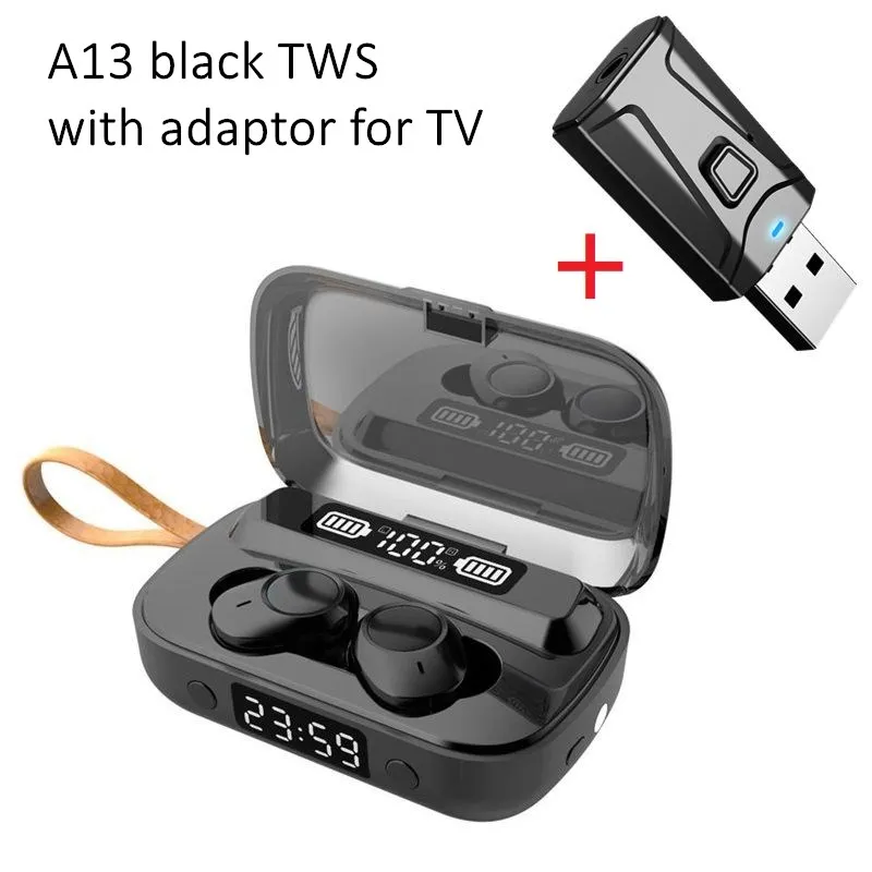 Модель: наушники A13 TWS с адаптером bluetoothЦвет: черныйВерсия: bluetooth V 5,0Функция: последняя/следующая песня, воспроизведение/пауза, отказ от вызова, одна клавиша SiriРабочее расстояние: 10-15 метровВодонепроницаемость: IPX7Время зарядки: около 0,5-1 часВремя воспроизведения музыки: около 3-4 часовВремя Stamdby: около 200 часовАккумулятор зарядного устройства для наушников: 2000 мАчЧастота: 2 кГц ~ 20 кГцЧувствительность: 115 ± 3 дБВходной ток: 5 в 1 АСопротивление: 32 Ом