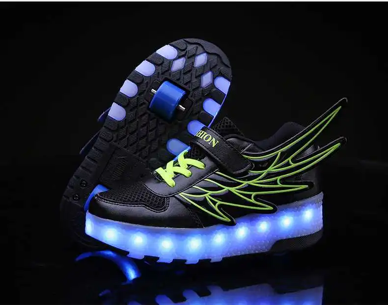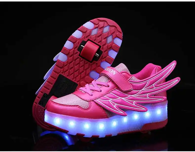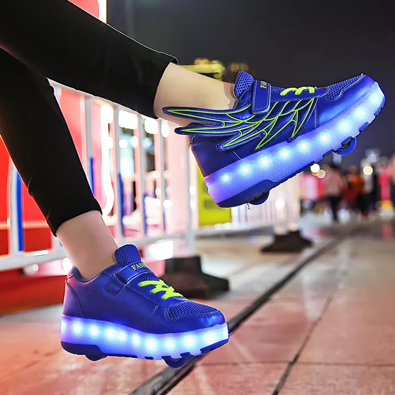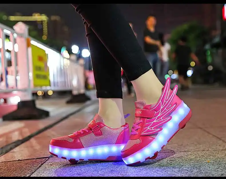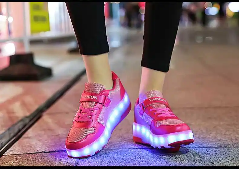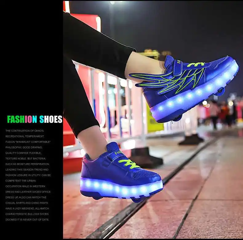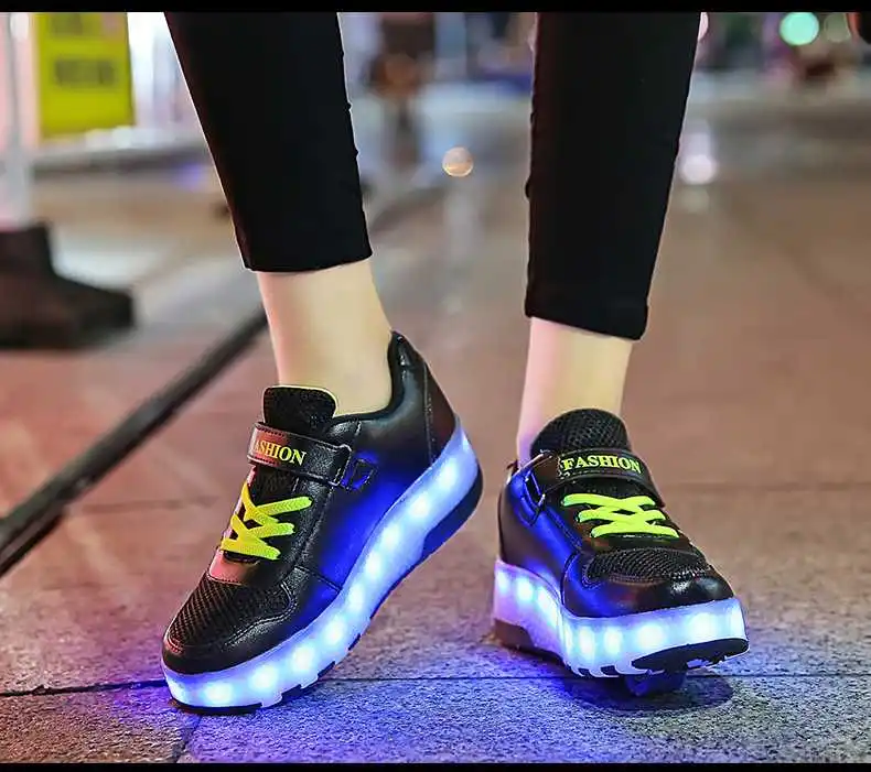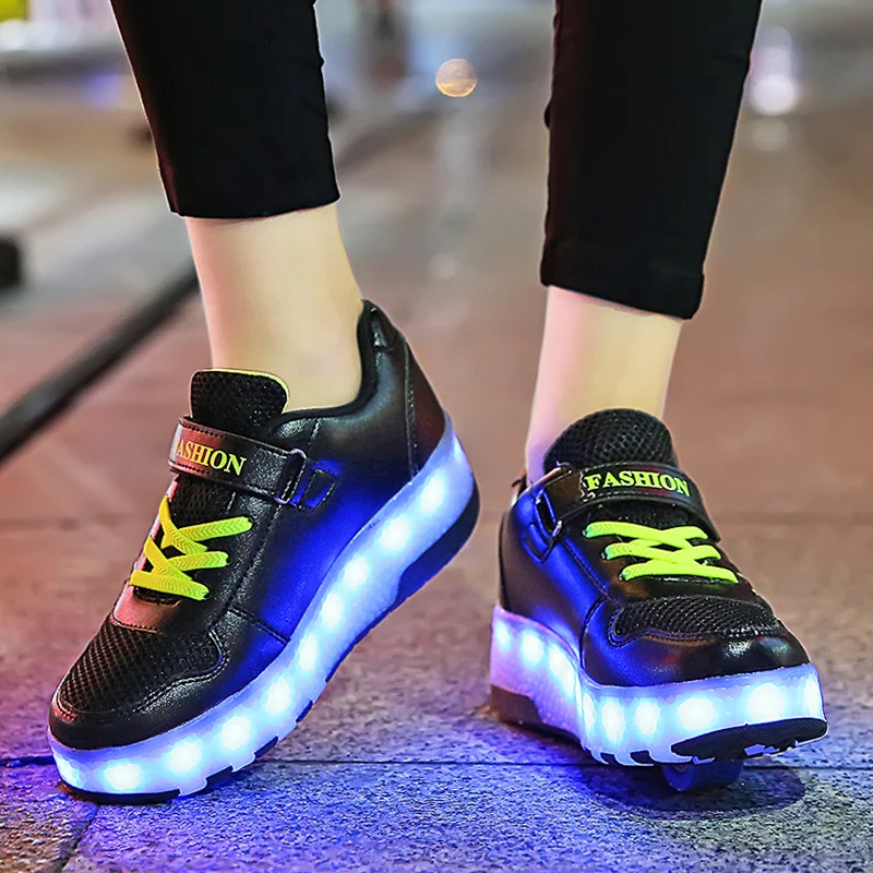 Роликовых коньках обувь светящийся светильник Led кроссовки с колесиками для мальчиков; Повседневные спортивные детские худи для девочек на 2021 на заднем колесе ботинки с подсветкой