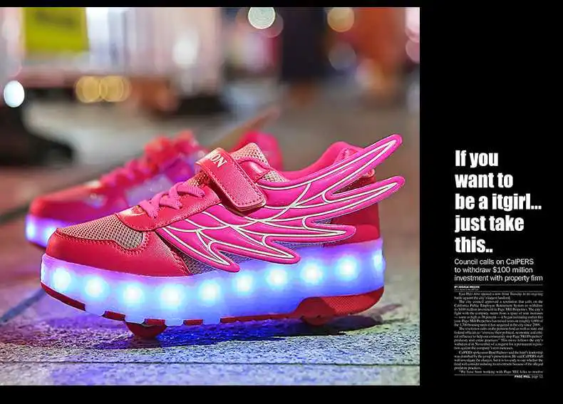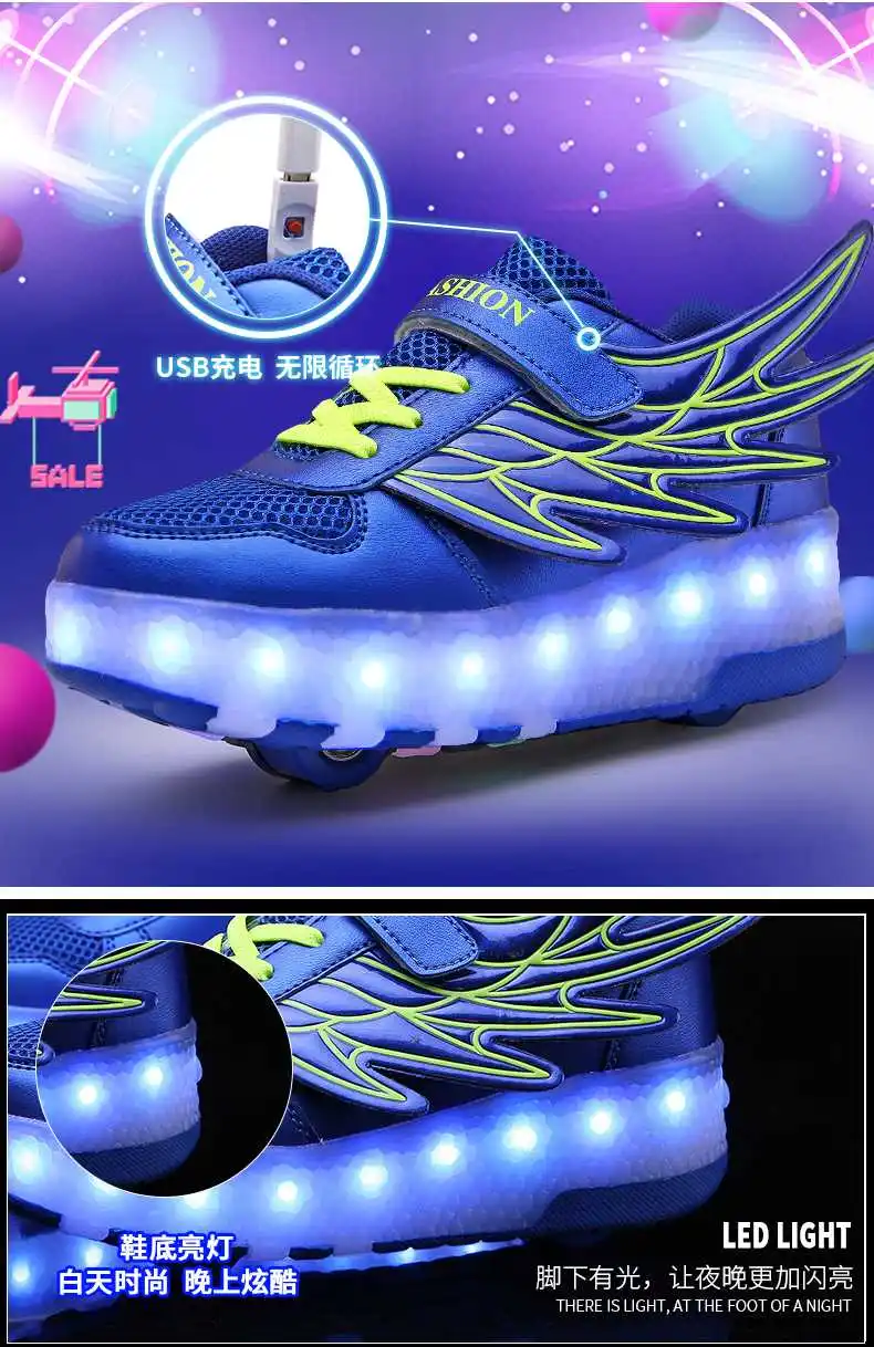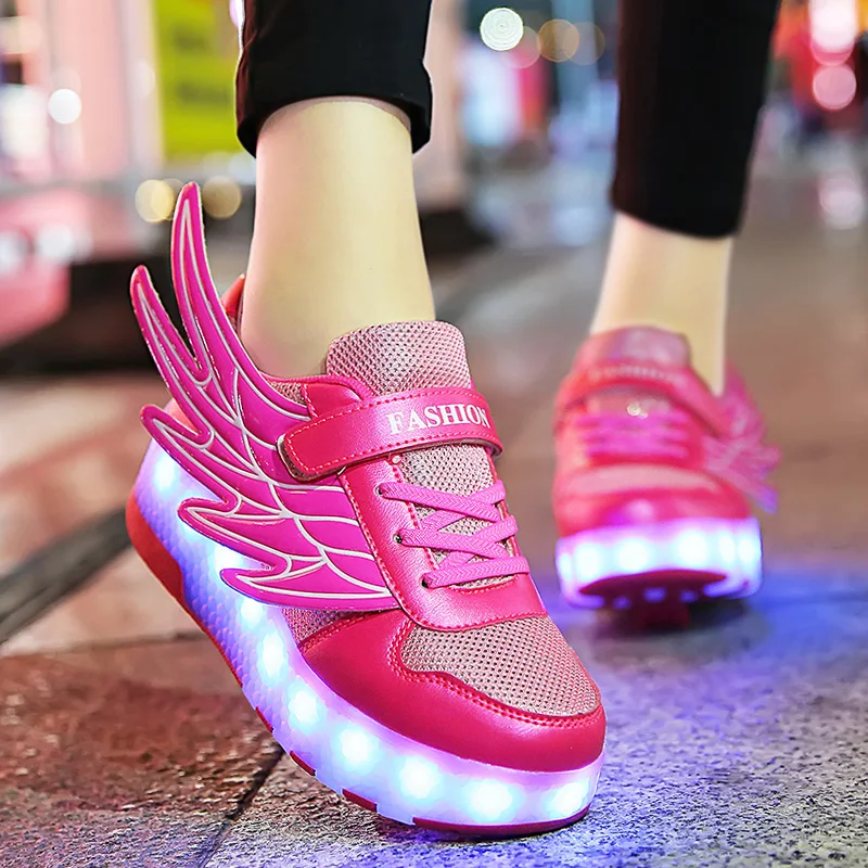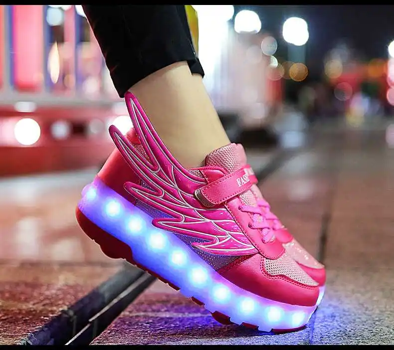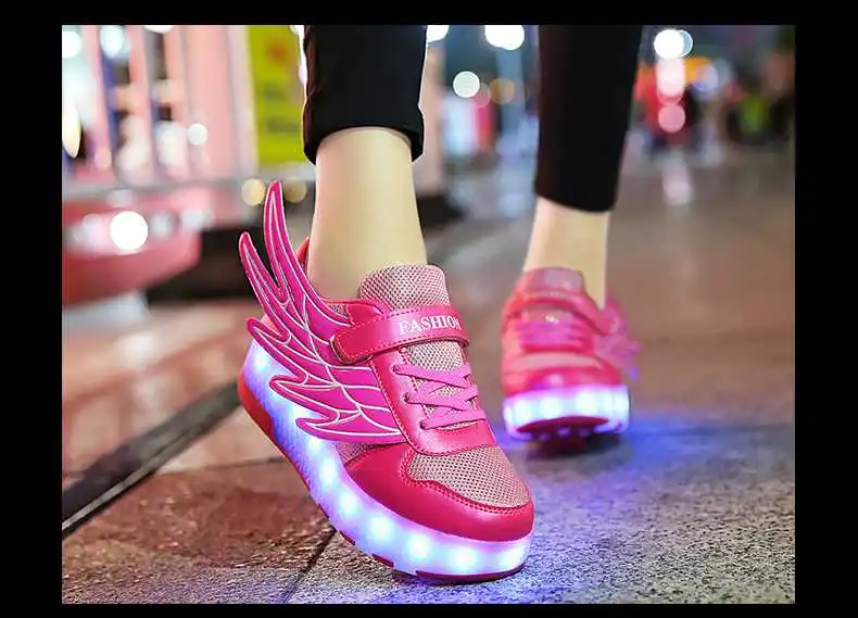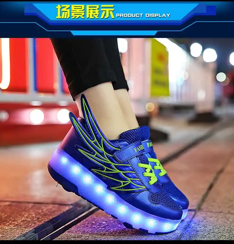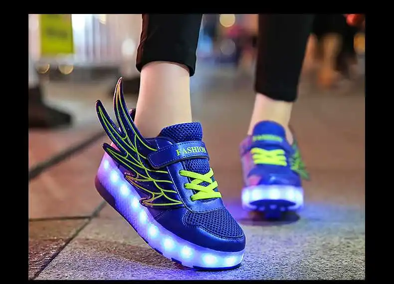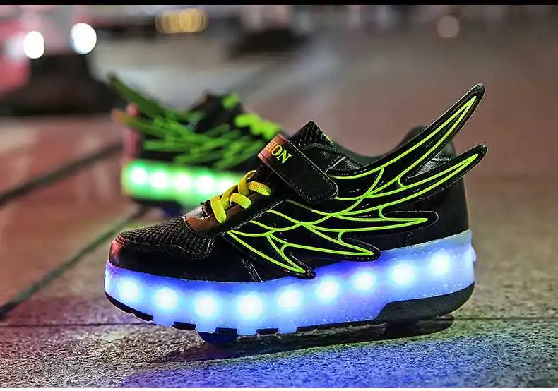 Роликовых коньках обувь светящийся светильник Led кроссовки с колесиками для мальчиков; Повседневные спортивные детские худи для девочек на 2021 на заднем колесе ботинки с подсветкой
