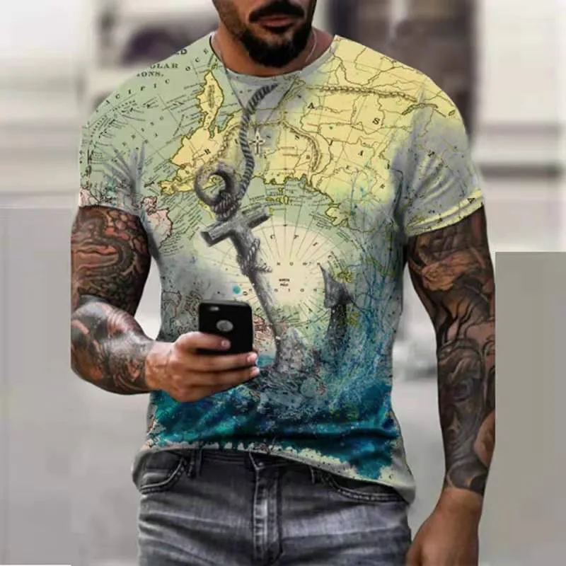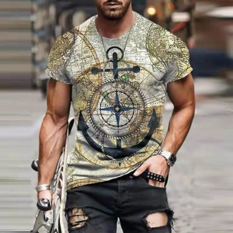 Мужские футболки с принтом Compass-3D, уличная одежда в стиле ретро...