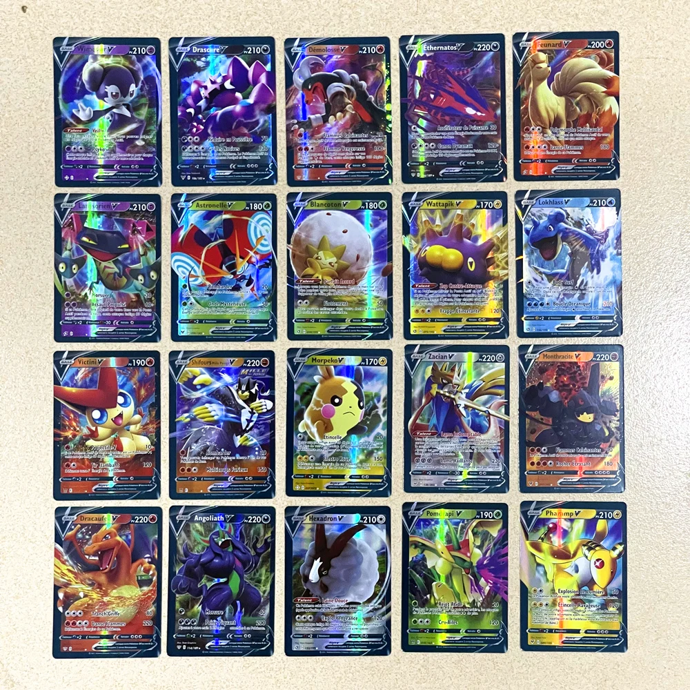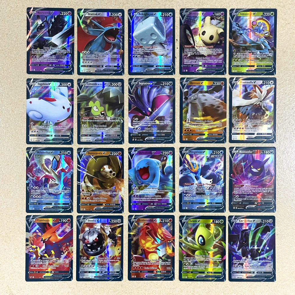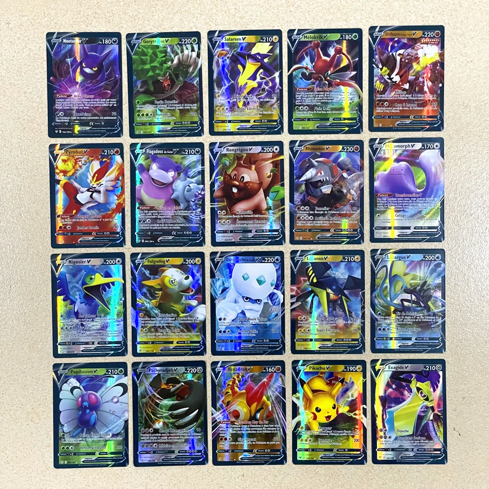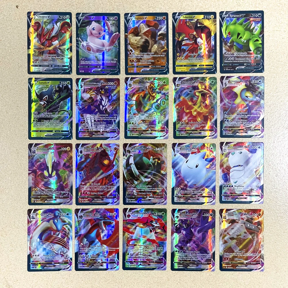 Карта с покемоном, французская версия, 100 шт., блестящая карта с покемоном, 100VMAX