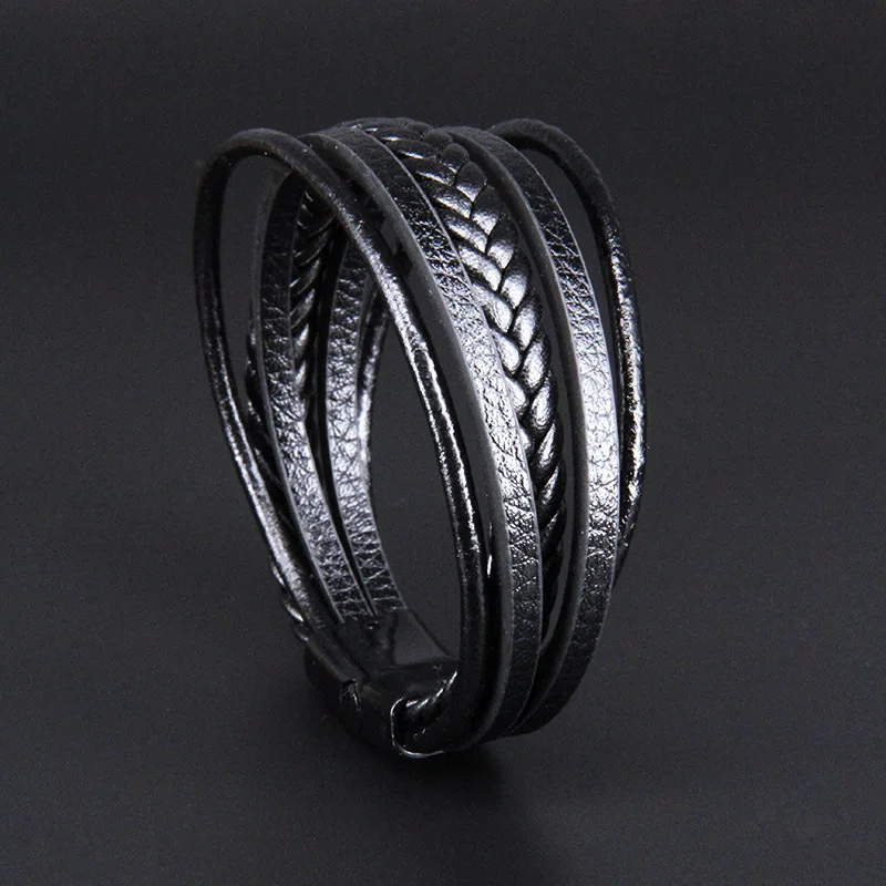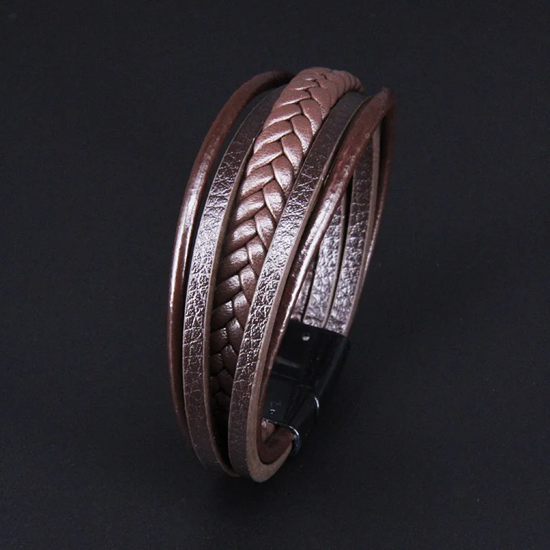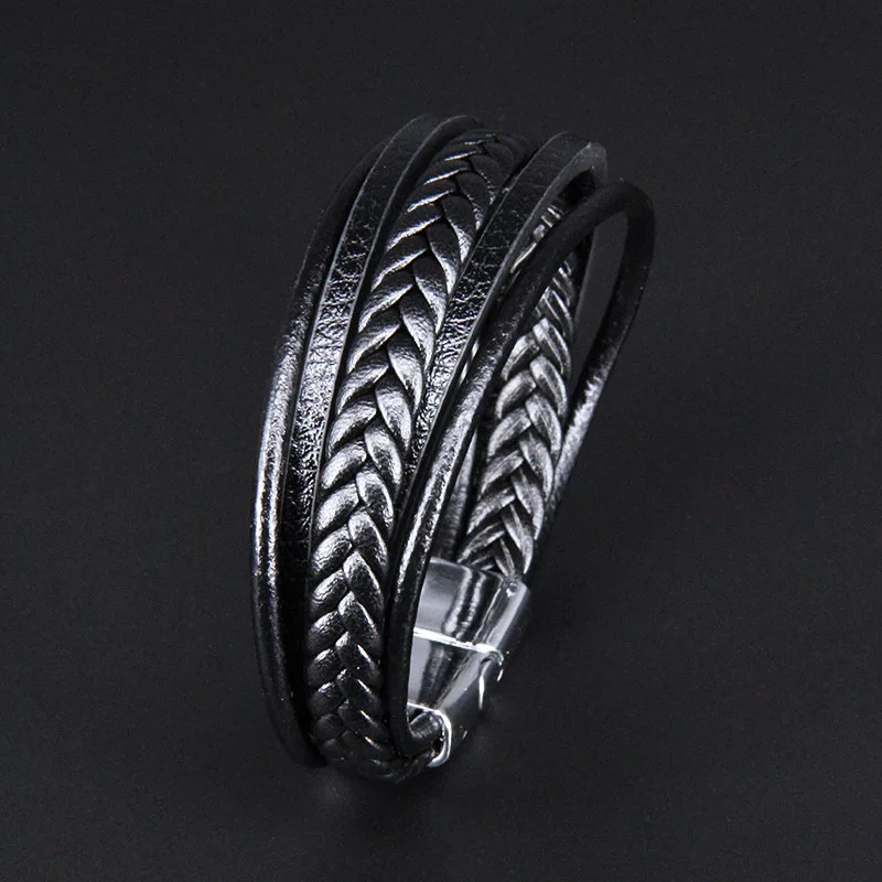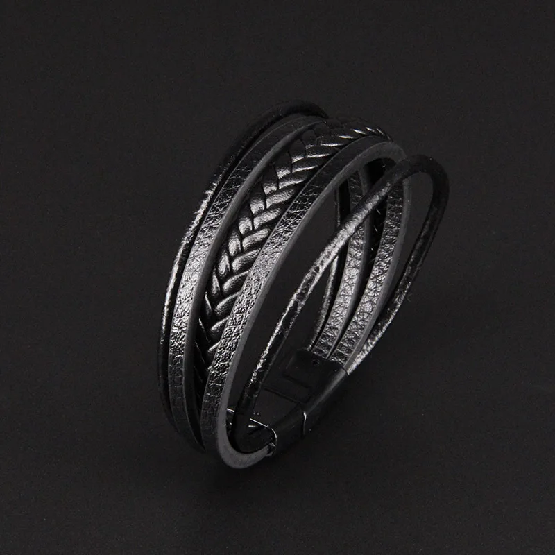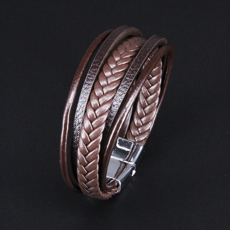 Мужской Многослойный кожаный браслет с магнитной застежкой, плетены...