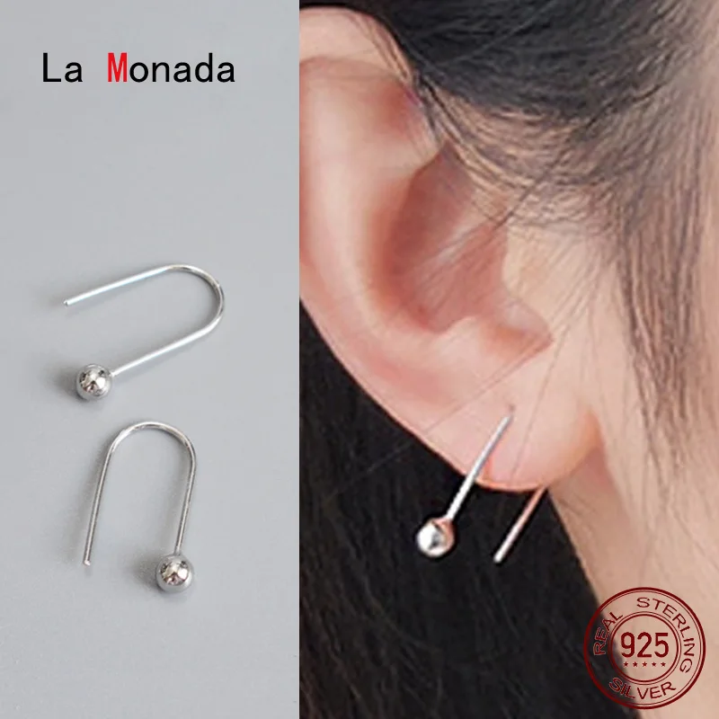 Ла Monada серьги в виде колец, для Для женщин серебро 925 U мяч крючок Для женщин серьги, ювелирное изделие, серебряные серьги в виде колец, 925 серебро Для женщин