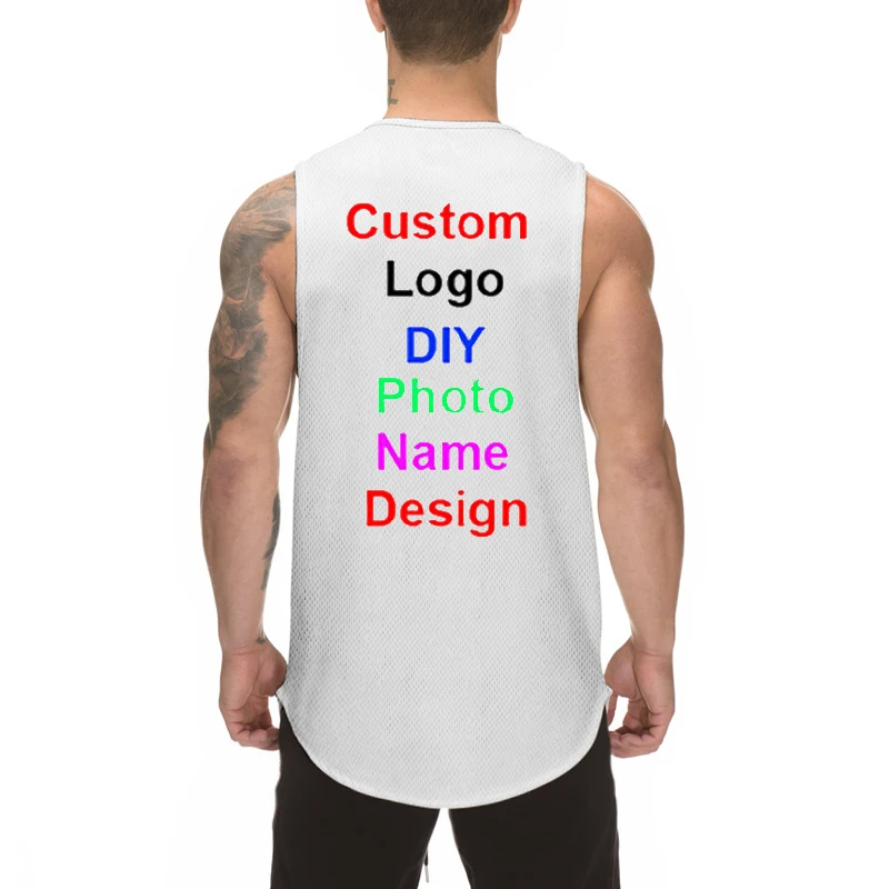 Фотографии логотипа вы можете выбрать свой собственный дизайн по индивидуальному заказу джогонг жилет из сетчатого материала, одежда для фитнеса, тренажерного зала майка Стрингера Бодибилдинг тренировки рубашка