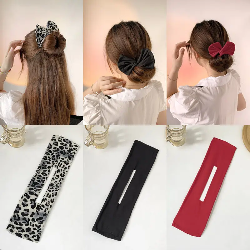 2 шт./компл. Deft Bun Maker повязка для волос DIY пончик для женщин и девочек аксессуары для волос принт однотонный бант УЗЕЛКОВЫЙ инструмент для укладки повязка для волос
