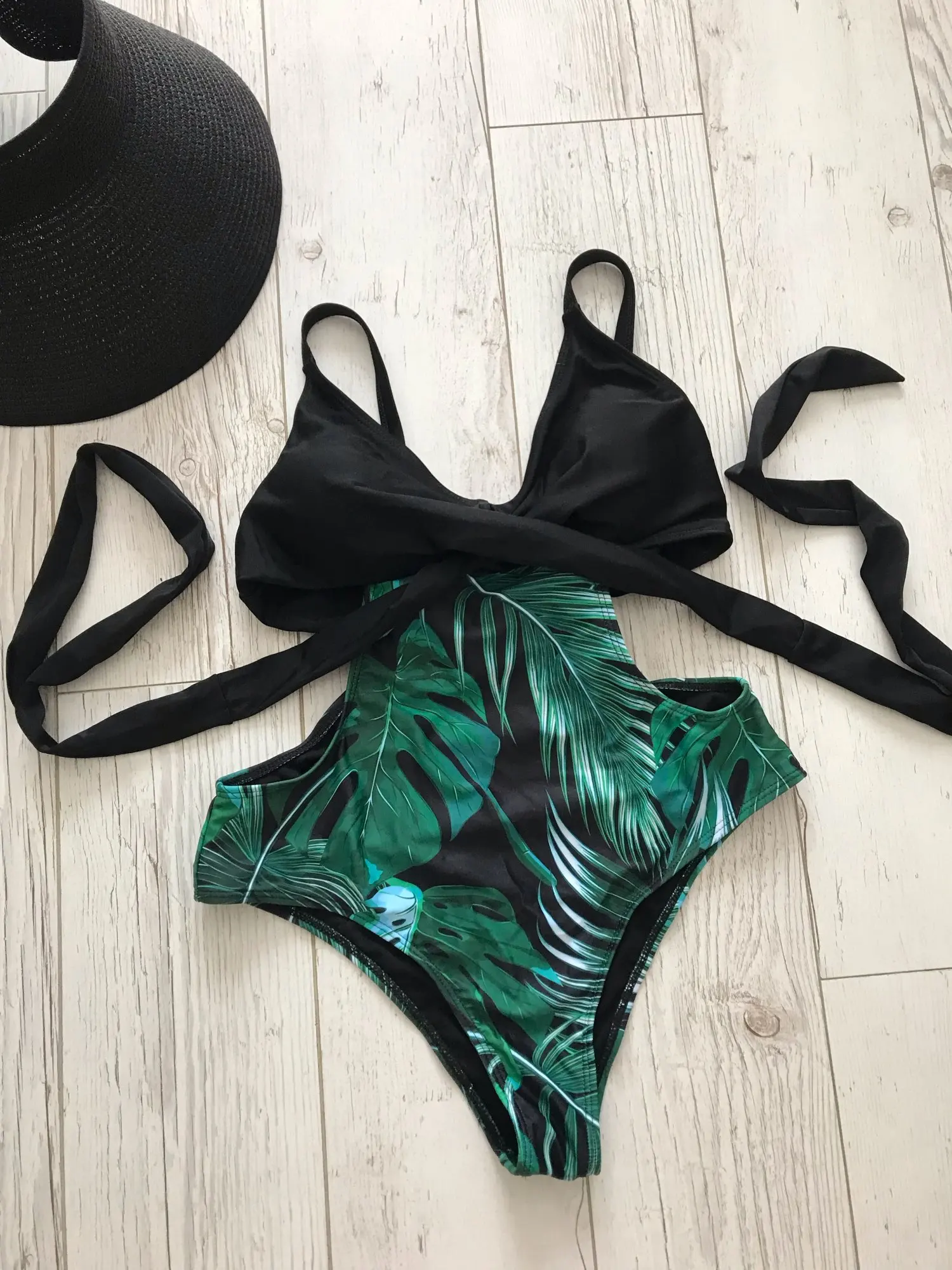 Женский сплошной купальник с принтом листьев, купальник с высокой талией, Быстросохнущий пикантный, с открытой спиной и цветочным принтом, прочный, для лета