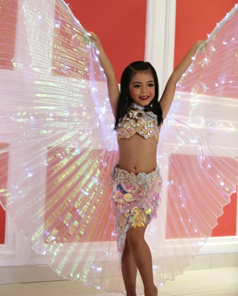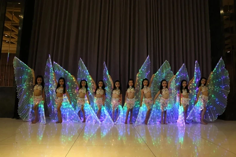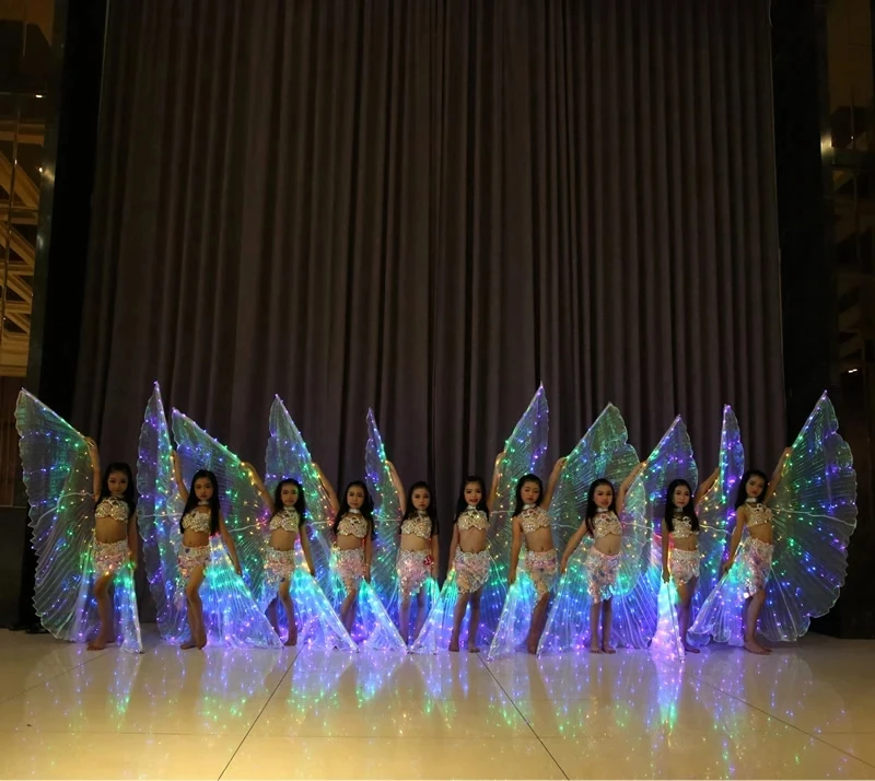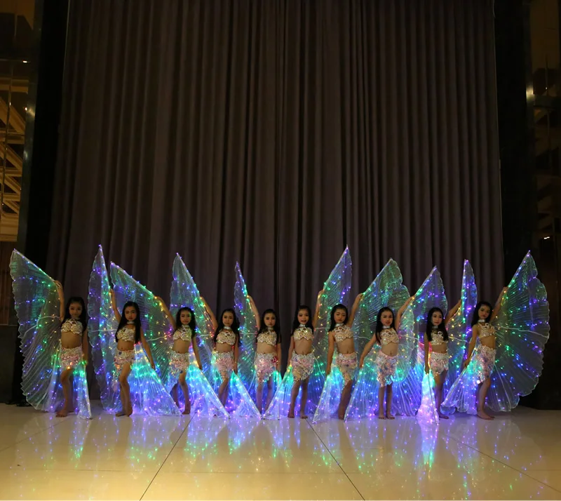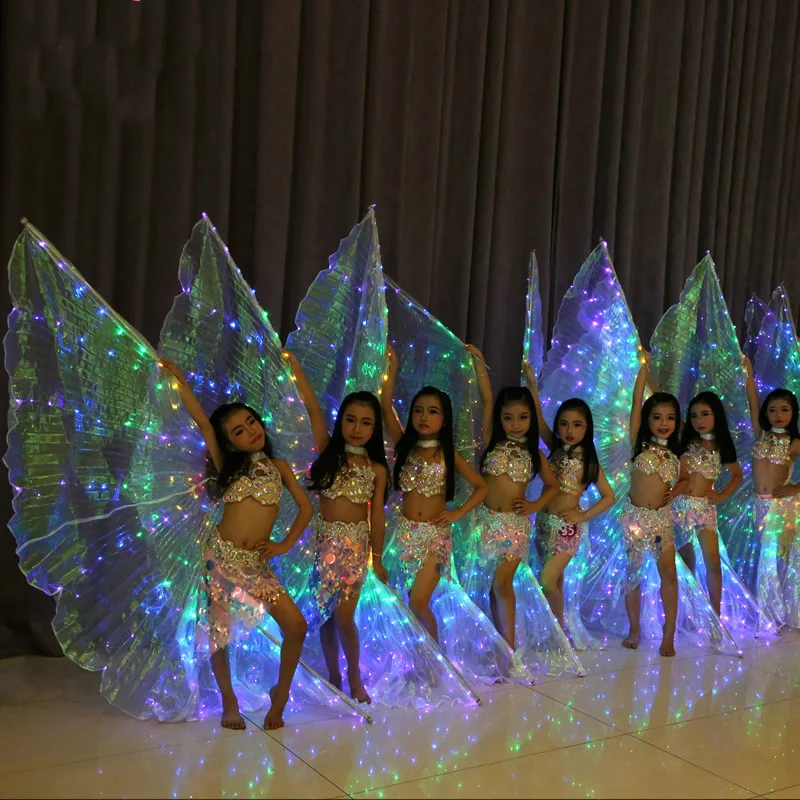 Крылья белые радужные Детские светодиодные сияющие крылья для танца живота Детские светодиодные Аксессуары для танца живота крылья с палочкой для девочек