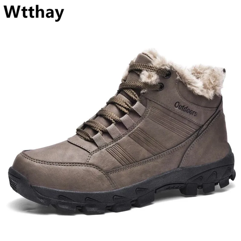 Зимние мужские ботинки wtsaid, уличные теплые меховые зимние ботинк...