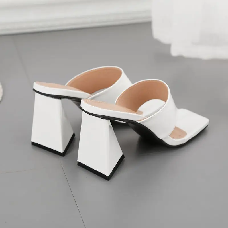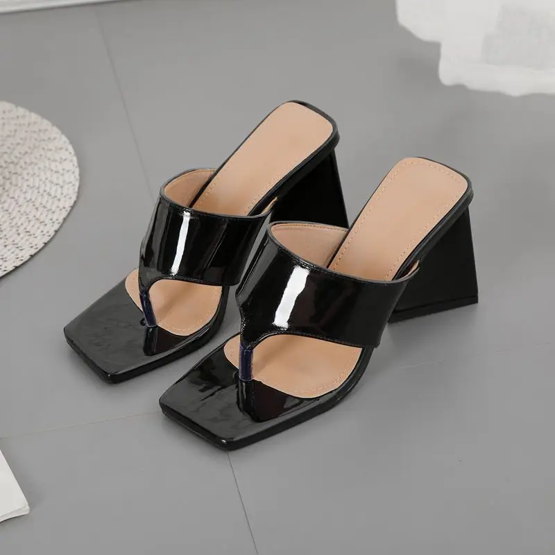 2021 Новинка; Летние шлепанцы для женщин Лакированная кожа красного и зеленого цвета сандалии с квадратным носком на толстой подошве; Вьетнамки на высоком каблуке; Вечерние туфли