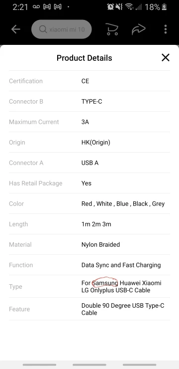 TypeFor Samsung Huawei Xiaomi LG Onlyplus USB-C Cable