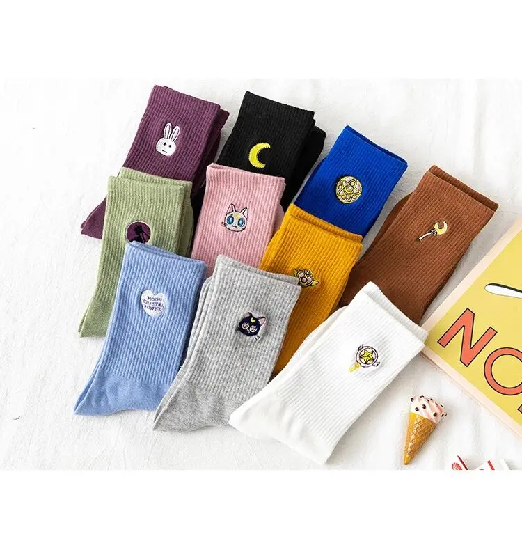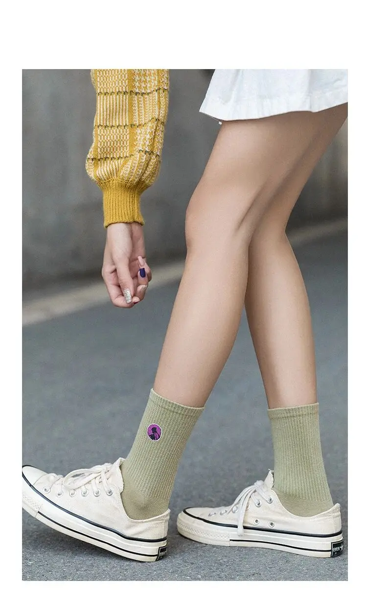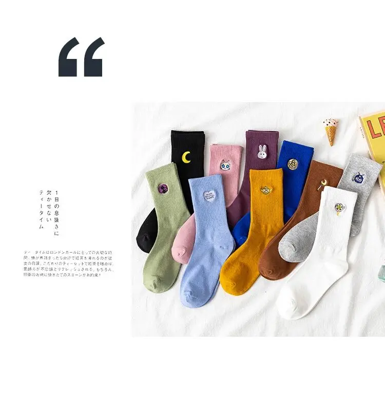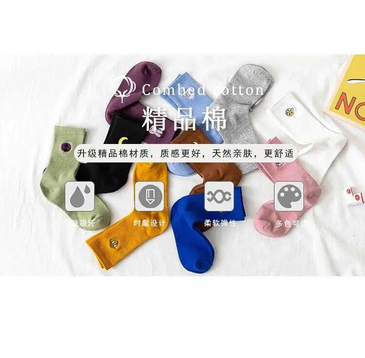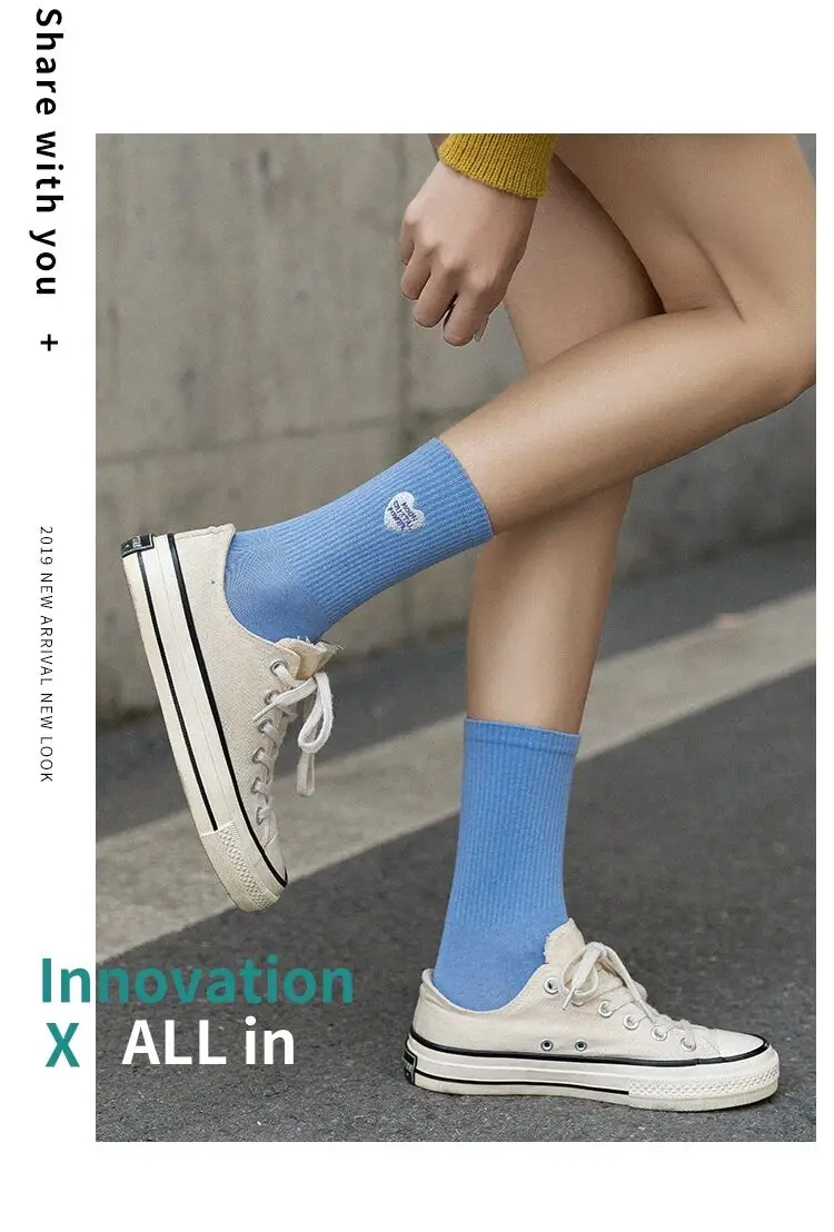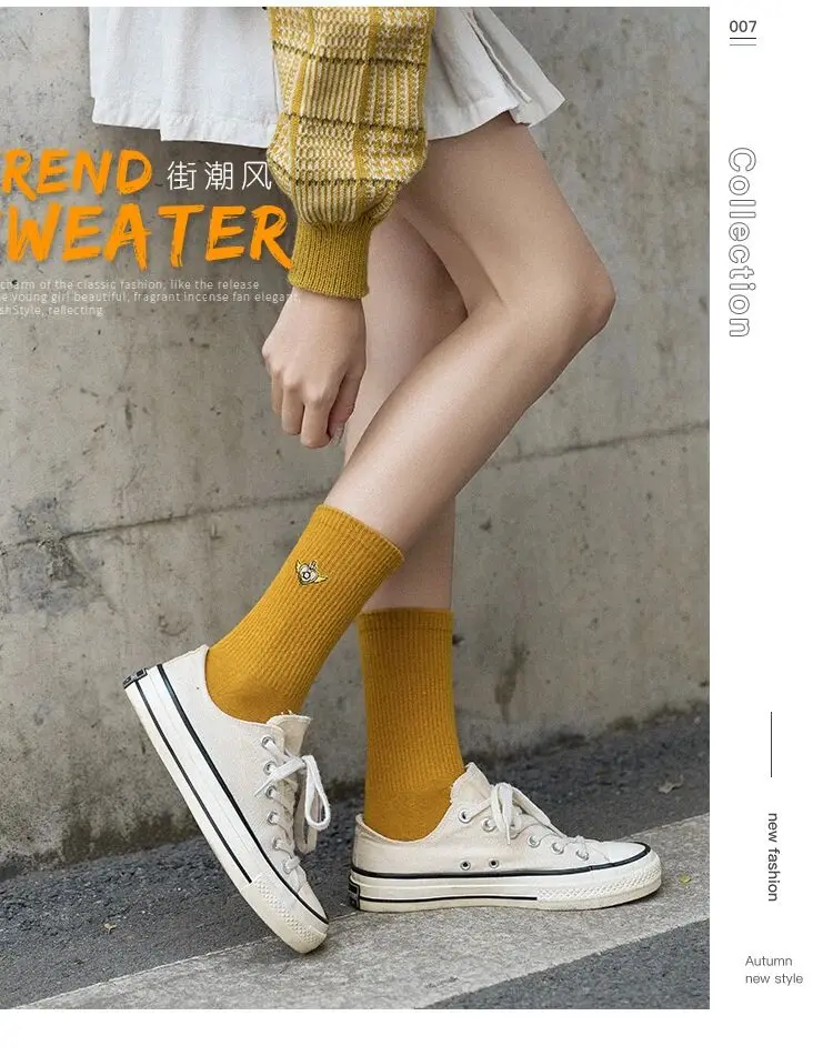 Носки женские хлопковые средней длины, милая сетчатая вышивка в Корейском стиле, подчеркивающая индивидуальность, красные, натуральные, уличные