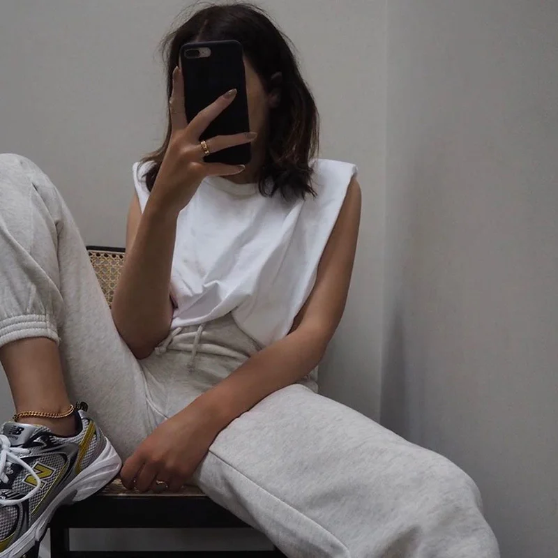 Плечо без рукавов Pad свободного кроя, футболка, жилет, для наших дам Новая Дамская Базовое покрытие в летние женские футболки 2021 Zaraing-Стиль ZA