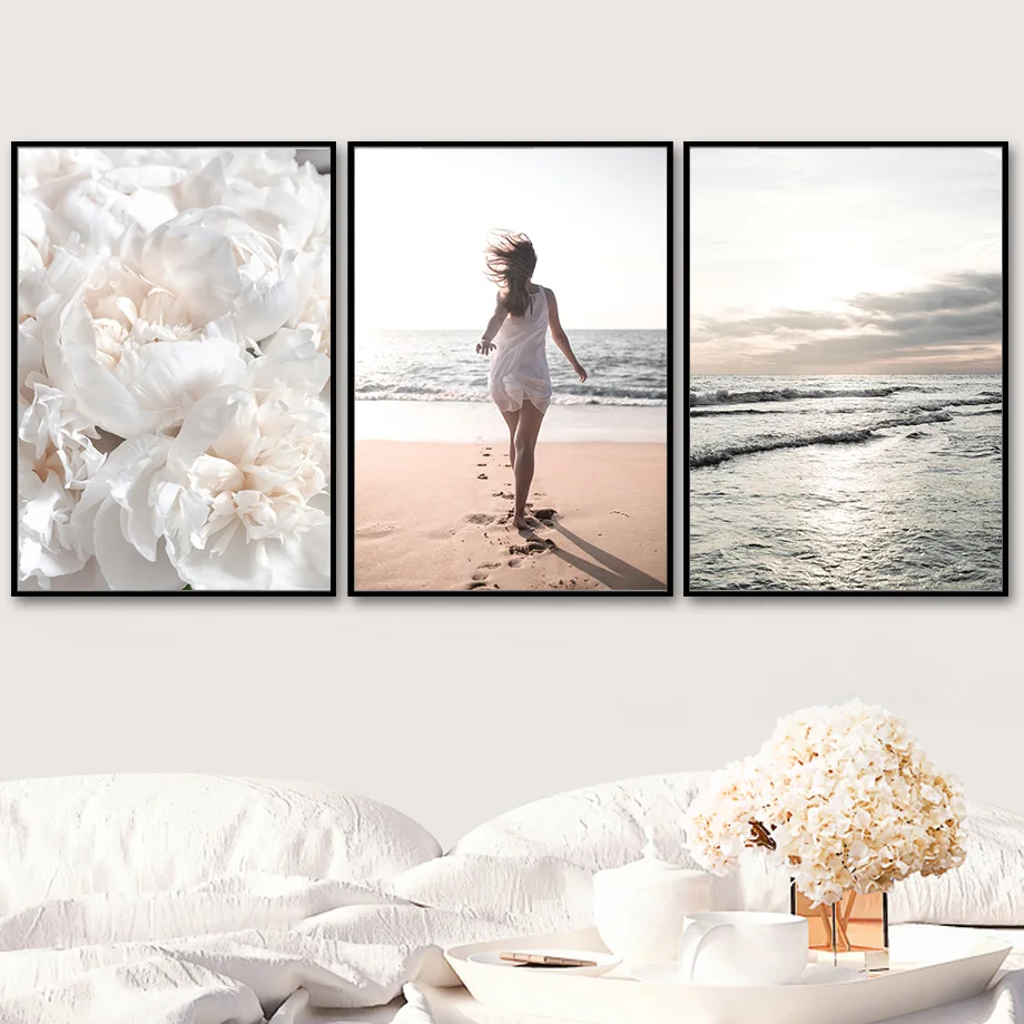Пляжная ракушка пустыня Роза линия девушка настенная Картина на хол...
