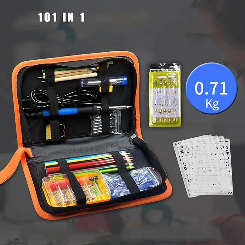 101 штук пирографа для резьбы по дереву 60 Вт с регулируемой температуройрезьбойтиснением железная ручка + шаблон + 12 цветных карандашей