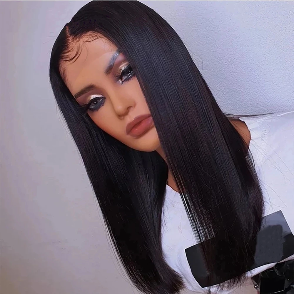 Длинные гладкие шелковистые прямые волосы на шнуровке спереди парик черный 180% для черных женщин парики средней части волоконные парики на шнуровке