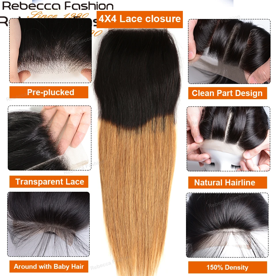 Бразильские Прямые искусственные волосы Rebecca с застежкой, волнистые человеческие волосы 1b 27, медовый блонд, 3 пучка с застежкой