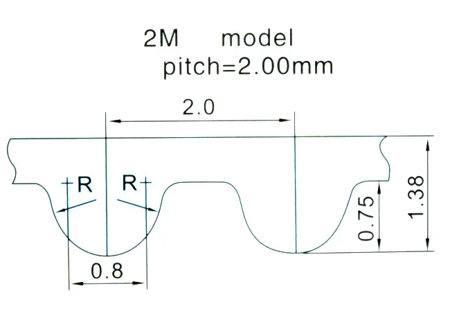 2 м характеристики и чертеж ремня синхронизации с замкнутым контуром: