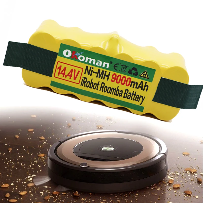 Аккумулятор Okoman 9000 мАч для пылесоса iRobot Roomba 500 600 700 800 900 600 серии iRobot roomba 620 650 700 770 780 800Технические характеристики:Емкость аккумулятора: 9 АчНапряжение аккумулятора: 14,4 ВТип аккумулятора: Ni-MHЦвет: желтыйВес: 600 гЗащита от неправильного напряжения, короткого замыкания, внутреннего перегрева.Совместим со следующими моделями:IRobot Roomba 510, iRobot Roomba 530, iRobot Roomba 531 iRobot Roomba 532 iRobot Roomba 533 iRobot Roomba 535IRobot Roomba 536 iRobot Roomba 540, iRobot Roomba 545IRobot Roomba 550 iRobot Roomba 551, iRobot Roomba 552IRobot Roomba 560, iRobot Roomba 561, iRobot Roomba 562IRobot Roomba 570, iRobot Roomba 580, iRobot Roomba 581IRobot Roomba 585, iRobot Roomba 595, iRobot Roomba 600IRobot Roomba 610, iRobot Roomba 620, iRobot Roomba 630Roomobot Roomba 650, iRobot Roomba 653,IRobotRobot 65460, iRobotRobot 65460 700, iRobot Roomba 760IRobot Roomba 770, iRobot Roomba 780, iRobot Roomba 790IRobot Roomba 800, iRobot Roomba 870, iRobot Roomba 880