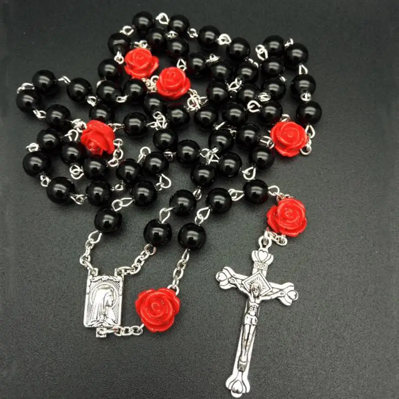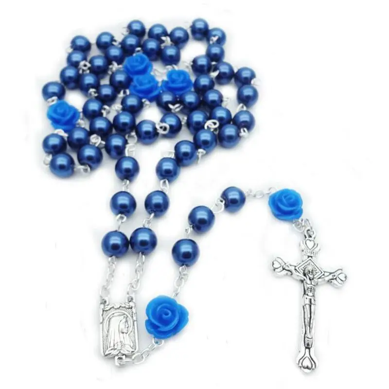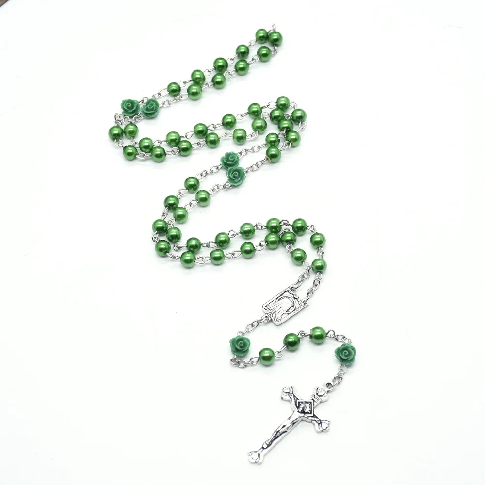 Ожерелье с имитацией жемчуга, 6 мм, крест, Розария, цветок, Дева Ма...