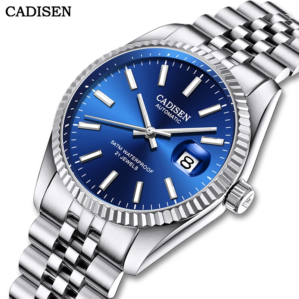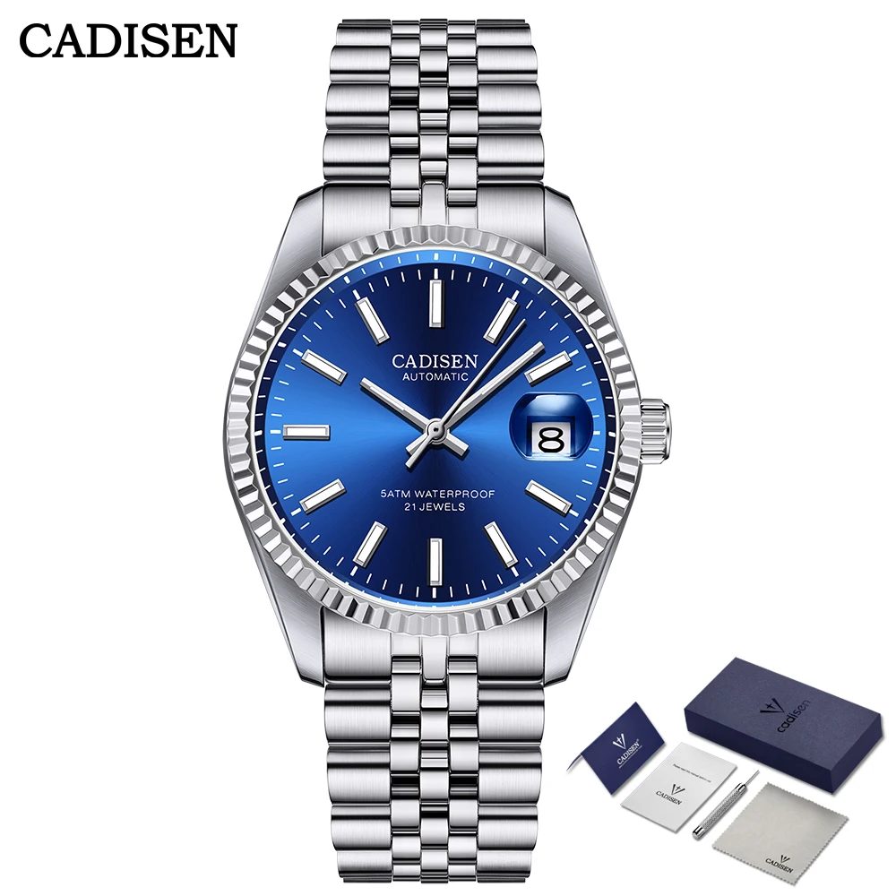 Мужские автоматические механические наручные часы Cadisen C8053 38 мм с синим циферблатом, деловые часы