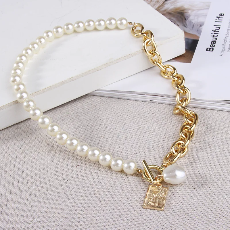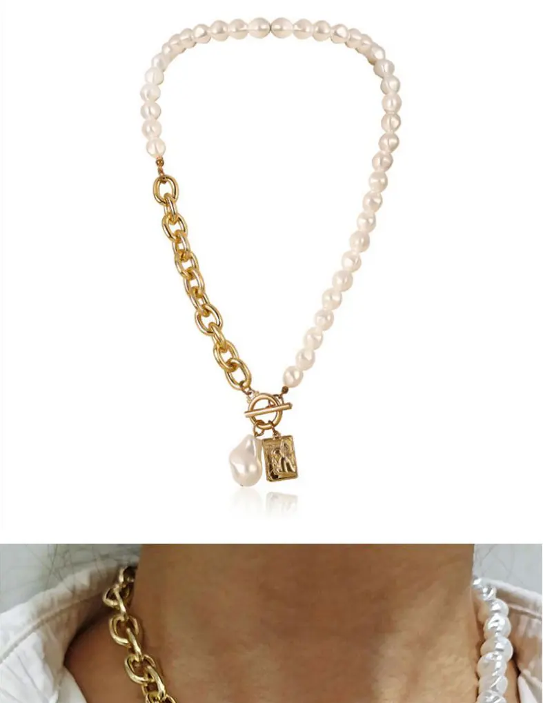 Винтажное ожерелье в стиле барокко с неровным жемчужным замком и цепочкой, 2021, Геометрическая подвеска, любовь, ожерелья для женщин, kpop, панк, ювелирные изделия