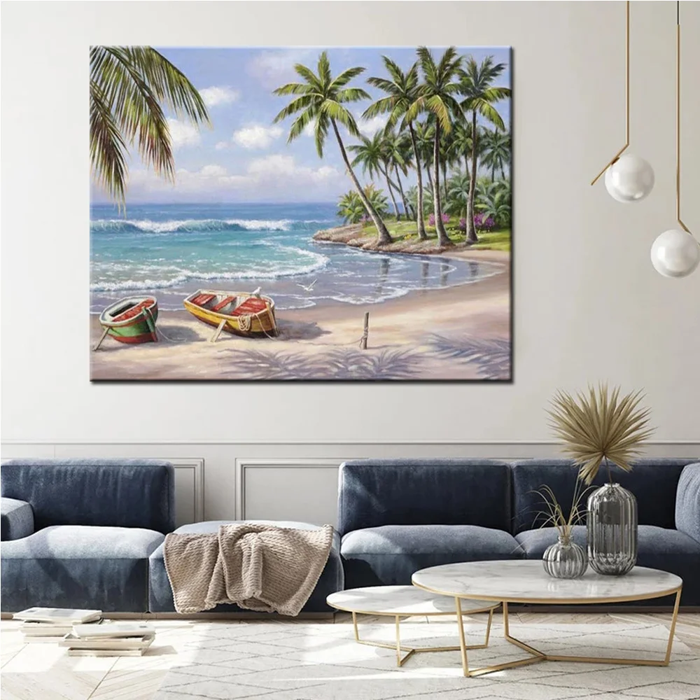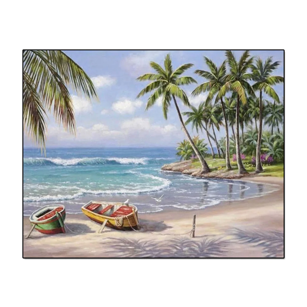 Картина летняя с морской лодкой, квадратная круглая Алмазная вышивка, мозаика для вышивки крестиком, новый домашний продукт