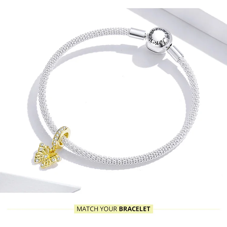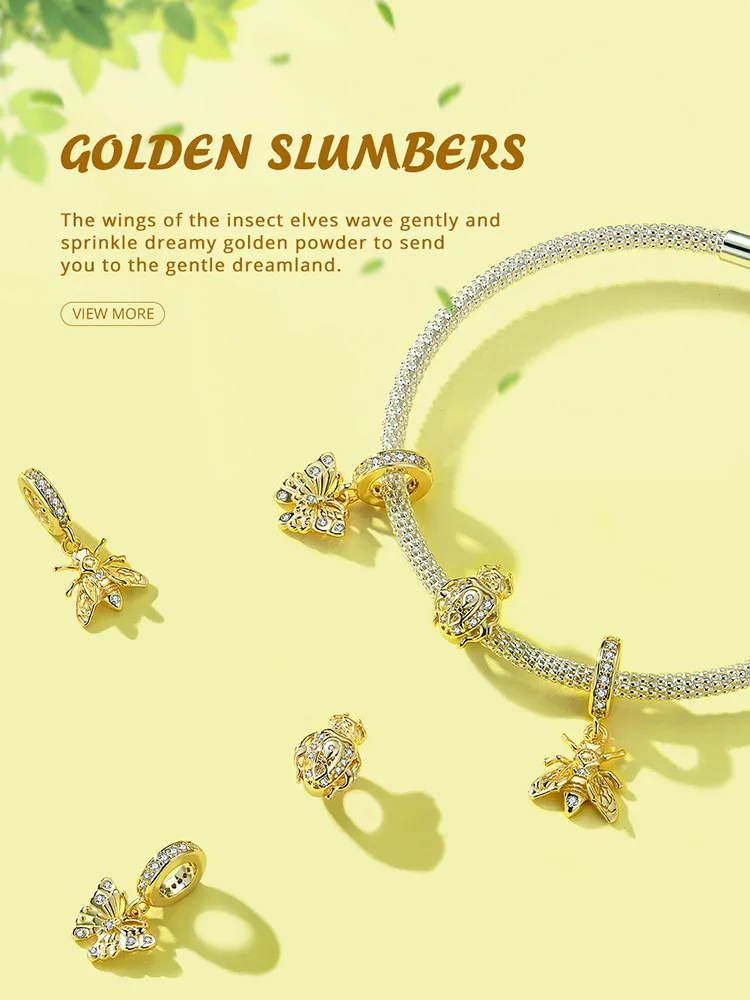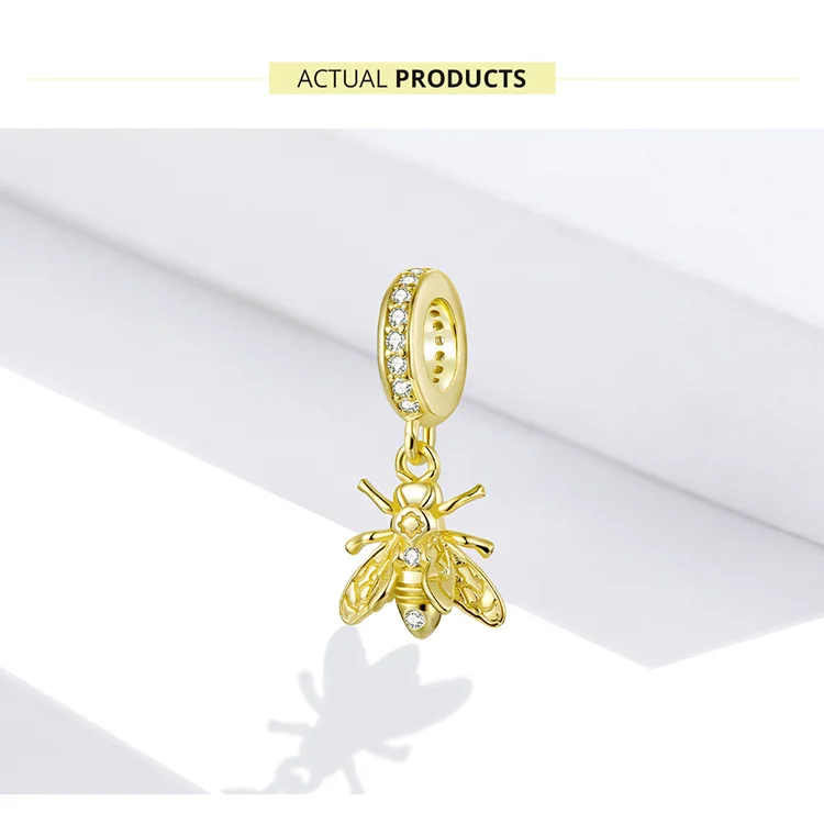 Bamoer 925 пробы цвет серебристый, Золотой Цвет пчелы Кулон Шарм со...
