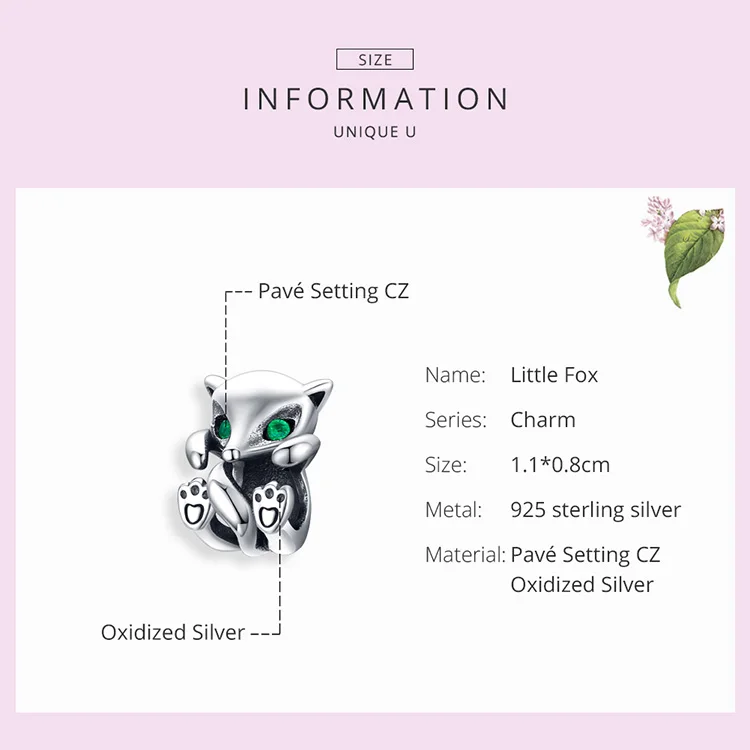 Bamoer Baby Fox Animal Metal Charm fit оригинальный браслет из сере...