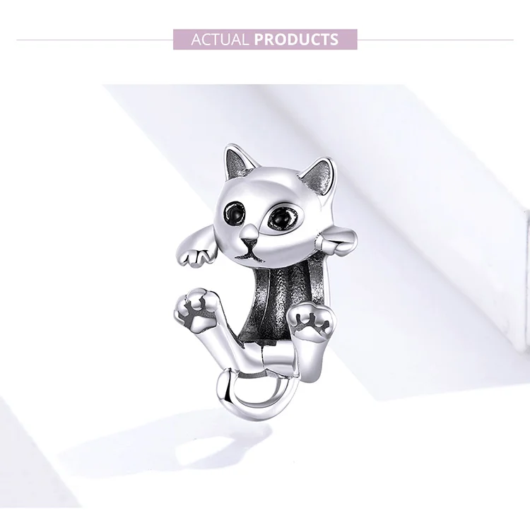 Бусины кошка из серебра 925 пробы с мультяшными животными, EFC404
