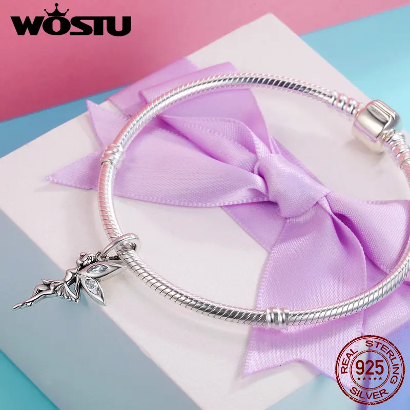 WOSTU из стерлингового серебра 925 пробы, милые животные, пчела, кошка, медведь, змея, бусины, подвески, подвески, женские браслеты, модные украшения, подарок «сделай сам»