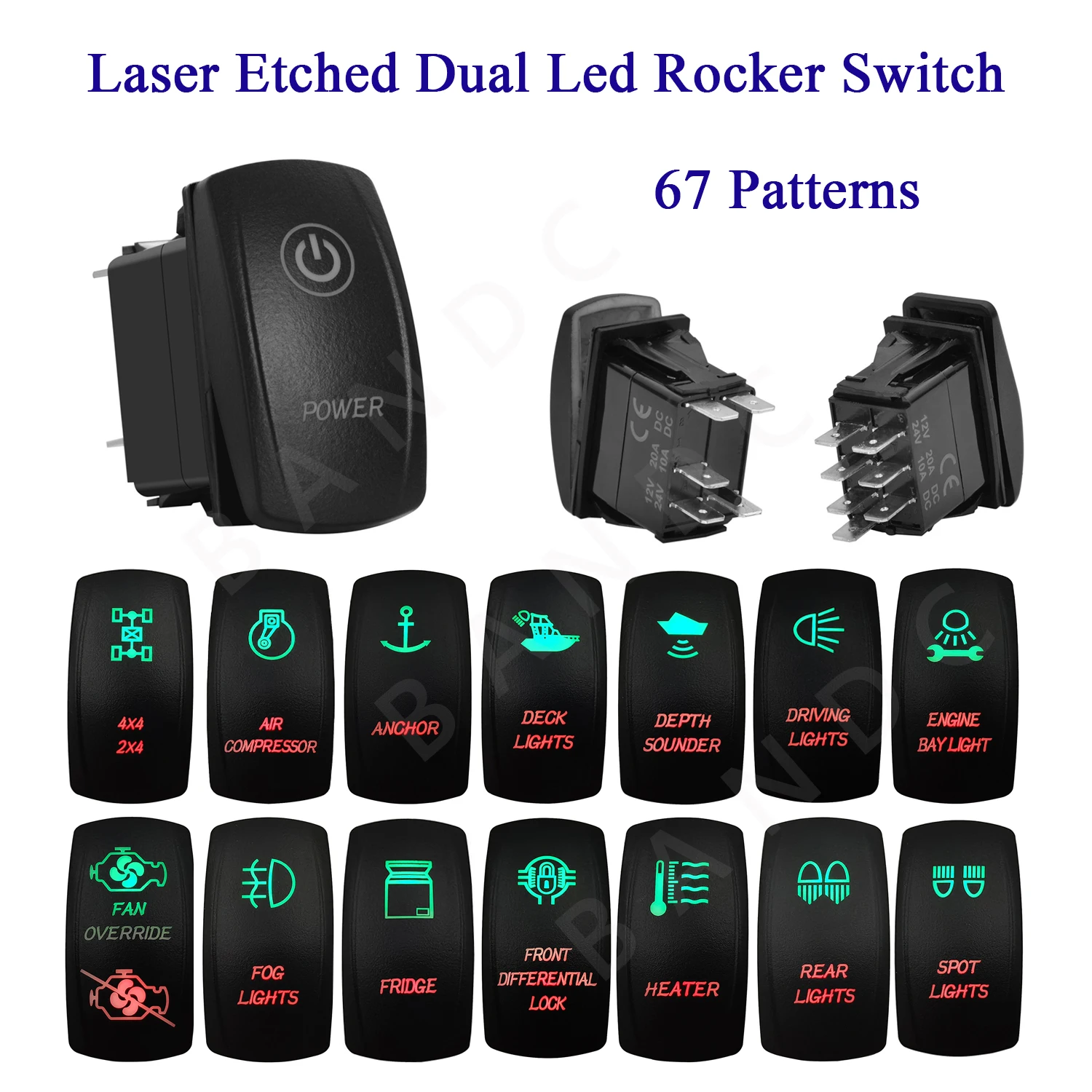 -5 контактов ВКЛ-ВЫКЛ SPST (однополюсный одиночный бросок) Лазерная Выгравированная клавишная переключатель с двумя встроенными зелеными и красными светодиодными лампами