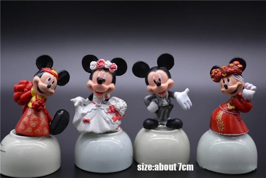 Disney 7-16 см свадебное платье Микки Минни пара кукол экшн-фигурки китайские красные модели кукол свадебные подарки игрушки для детей