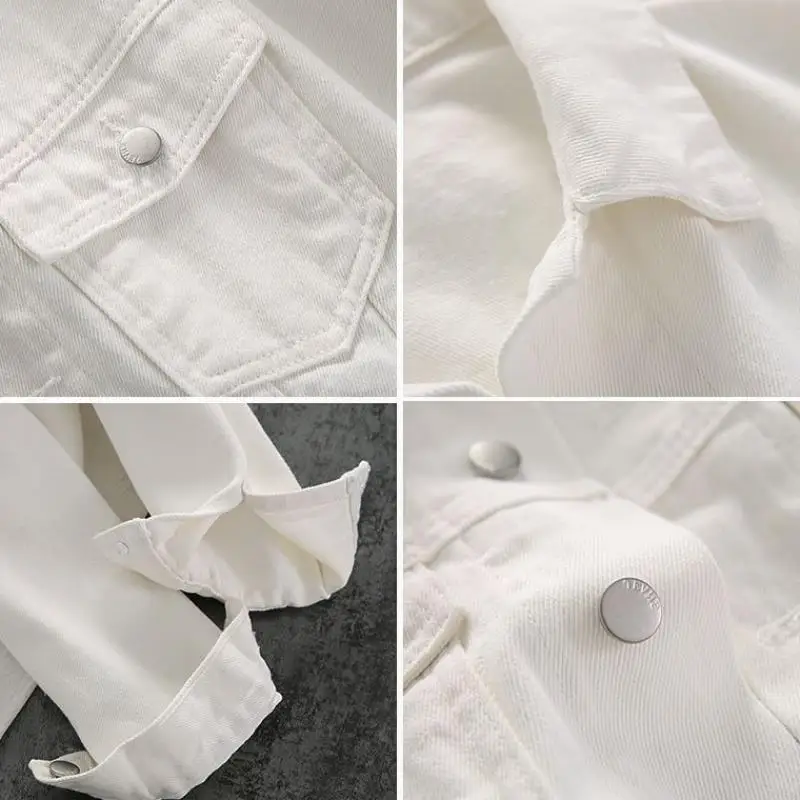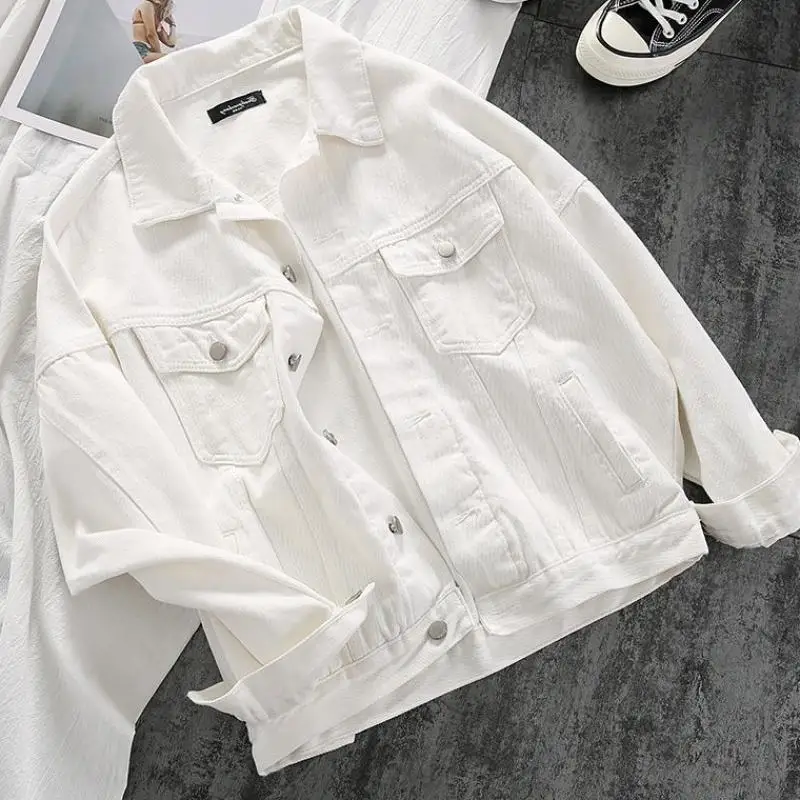 Женская джинсовая куртка, белая свободная повседневная верхняя одеж...
