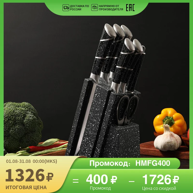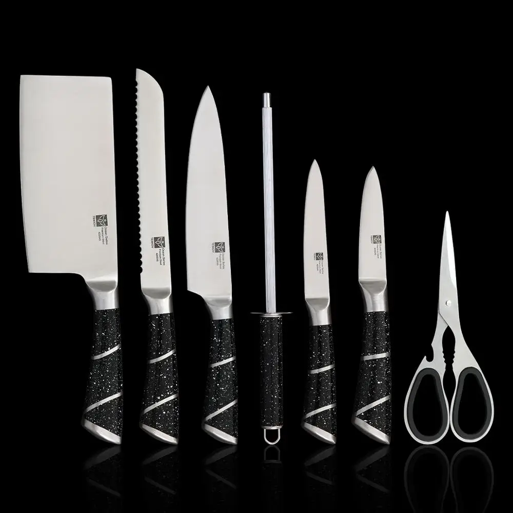 Набор кухонных ножей 7 в 1, точилка для поварских лезвий из нержавеющей стали с деревянной подставкой