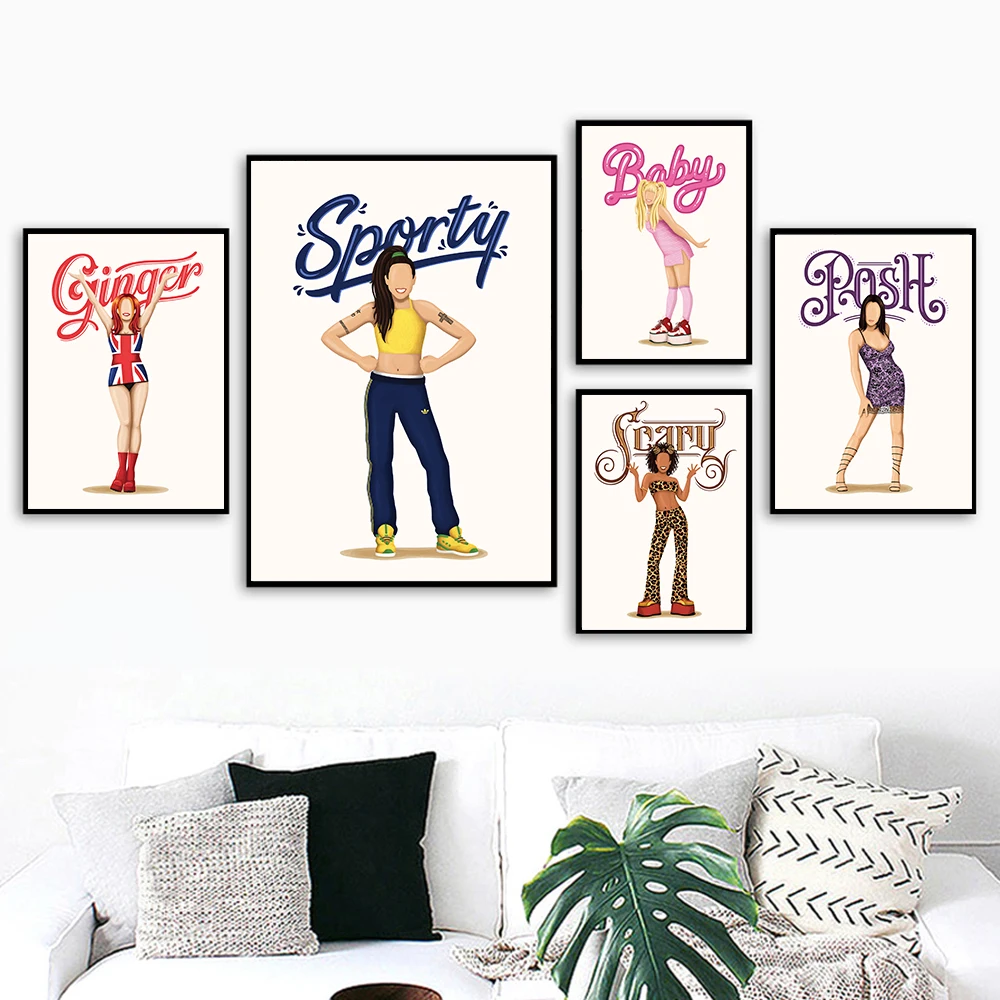 Музыкальный постер для девушек, 90 СПАЙС, девушки, страшная Спортивная Веселая поп Картина на холсте, абстрактная настенная Художественная печать, картина для декора комнаты для девушек