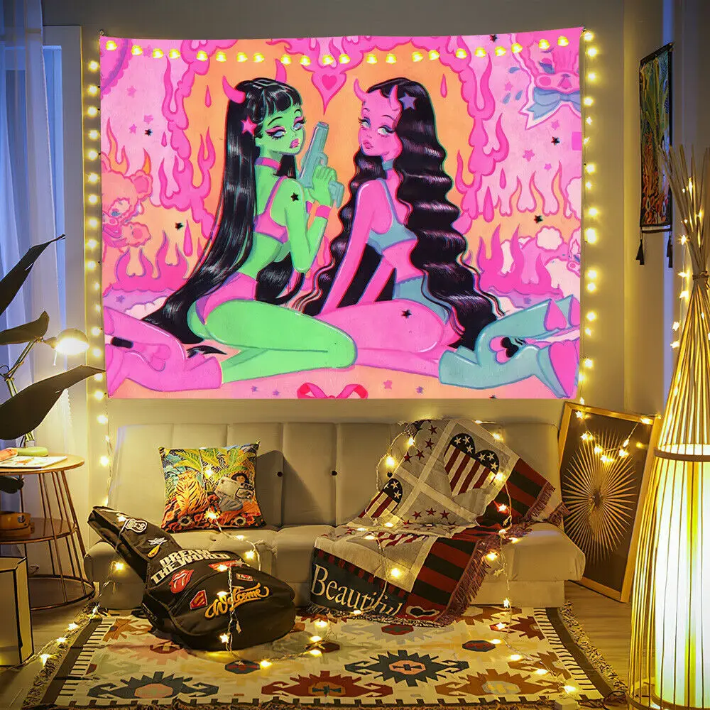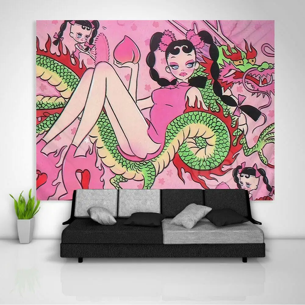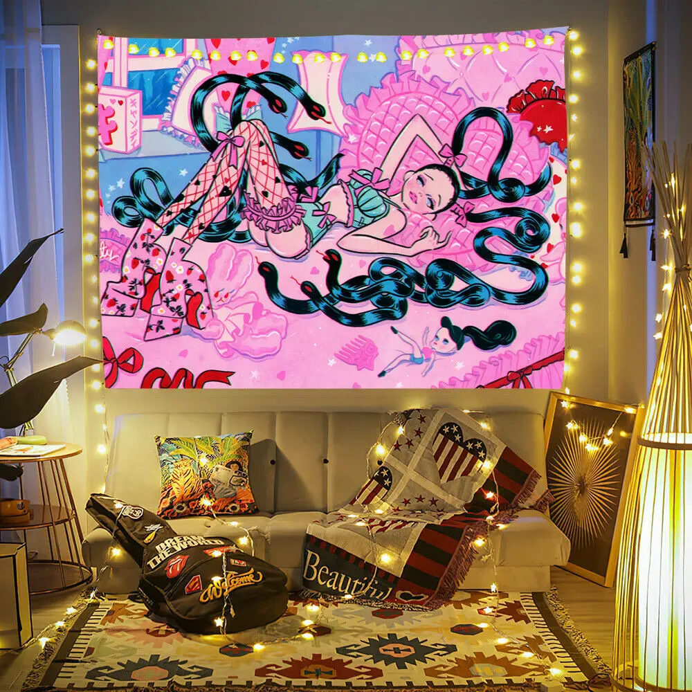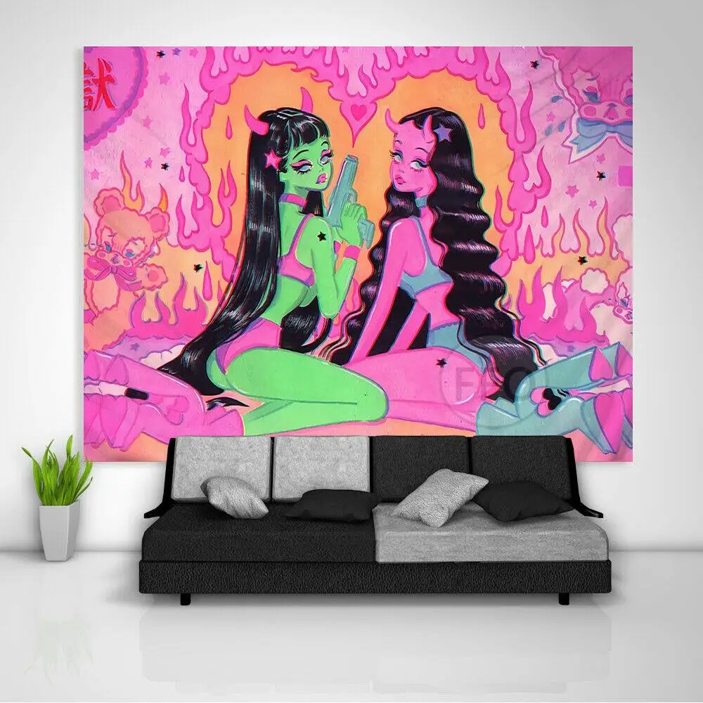 гобелен декор декор комнаты макраме комнаты Kawaii женский настенный гобелен, эстетический Декор для комнаты, аниме гобелен, Таро, девушка, иллюстрация, картина, повесить на стену