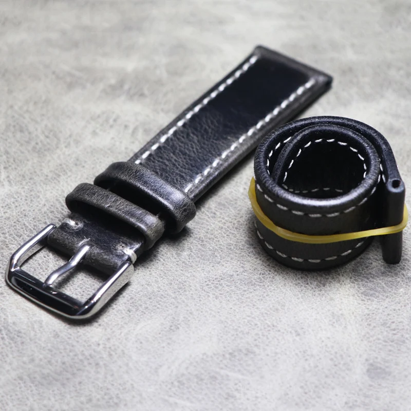 Высококачественный Итальянский черный кожаный ремешок ручной работы...