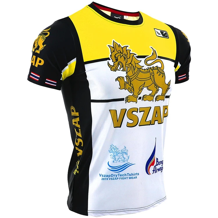Быстросохнущая футболка VSZAP для муай тай бокса, футболка с коротким рукавом для MMA, фитнеса, эластичные мужские футболки для занятий спортом