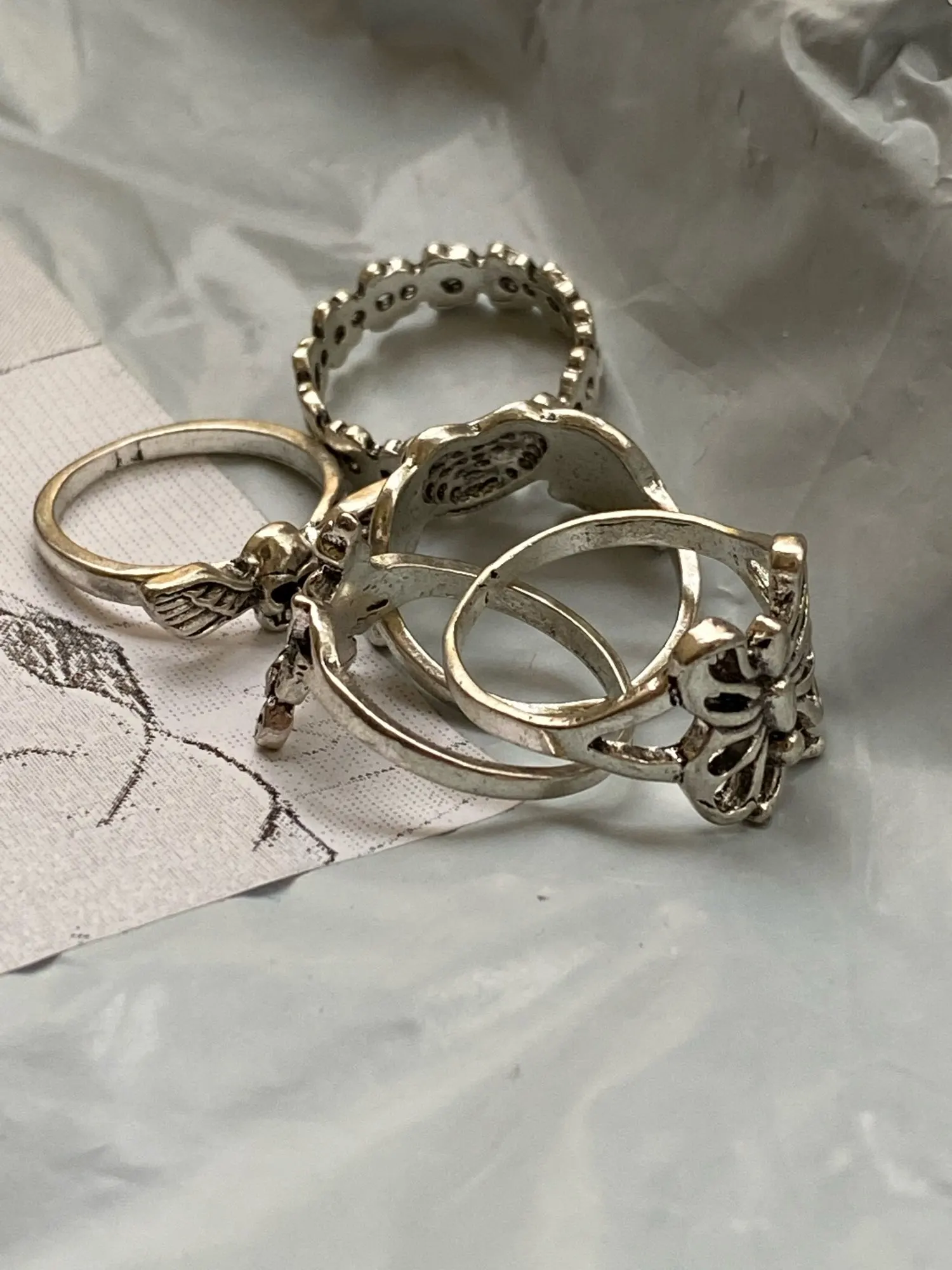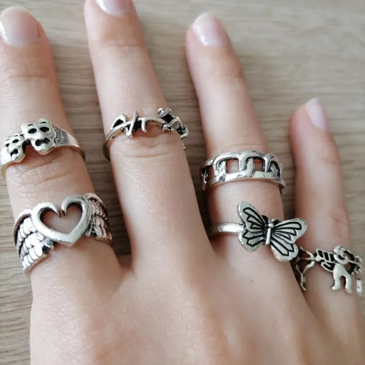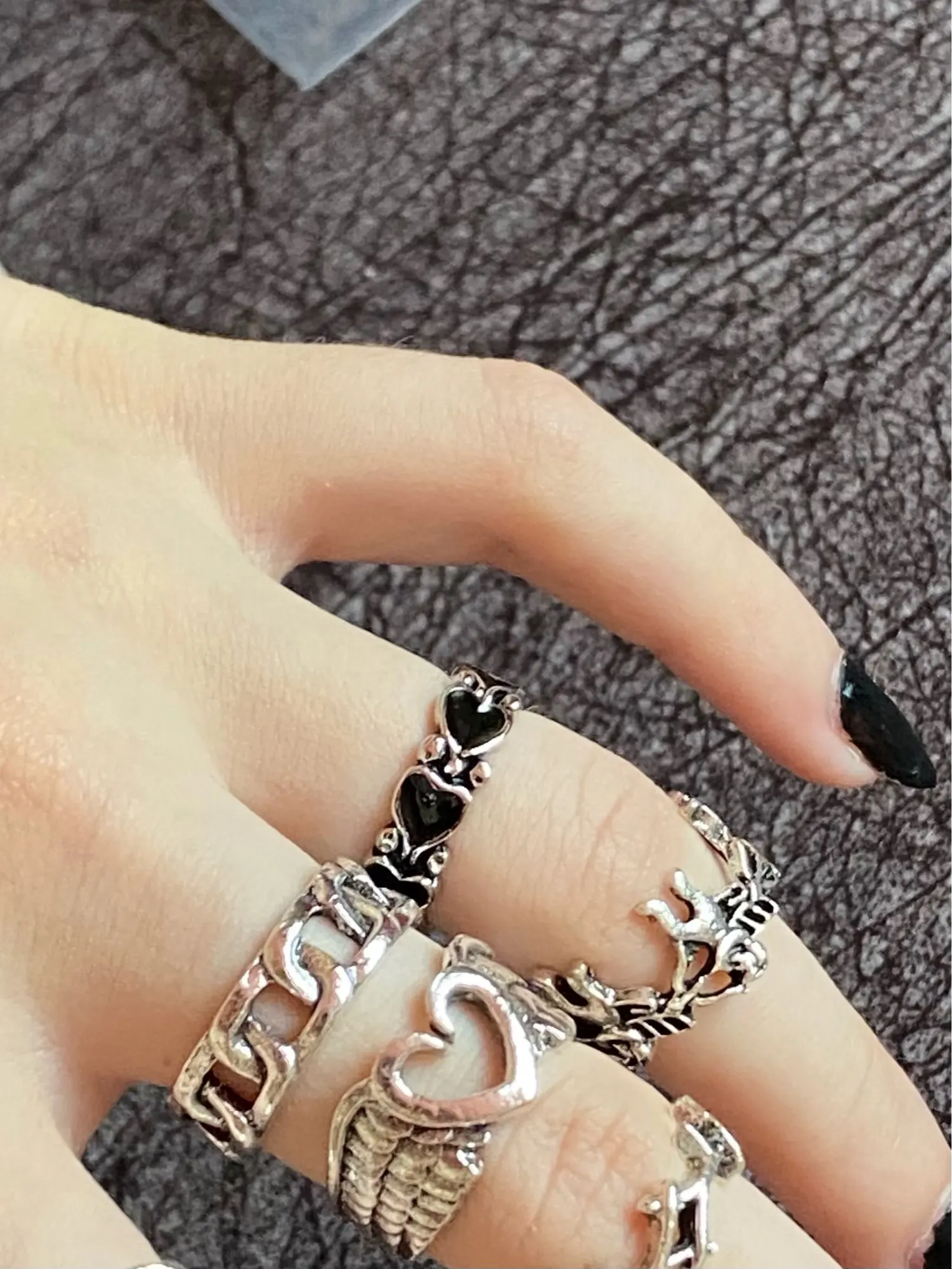 Винтажные посеребренные кольца кольцо с крыльями ангела для женщин, Наборы украшений для вечеринок в стиле готика, панк, стимпанк, сердца, бабочки, черепа, 2021