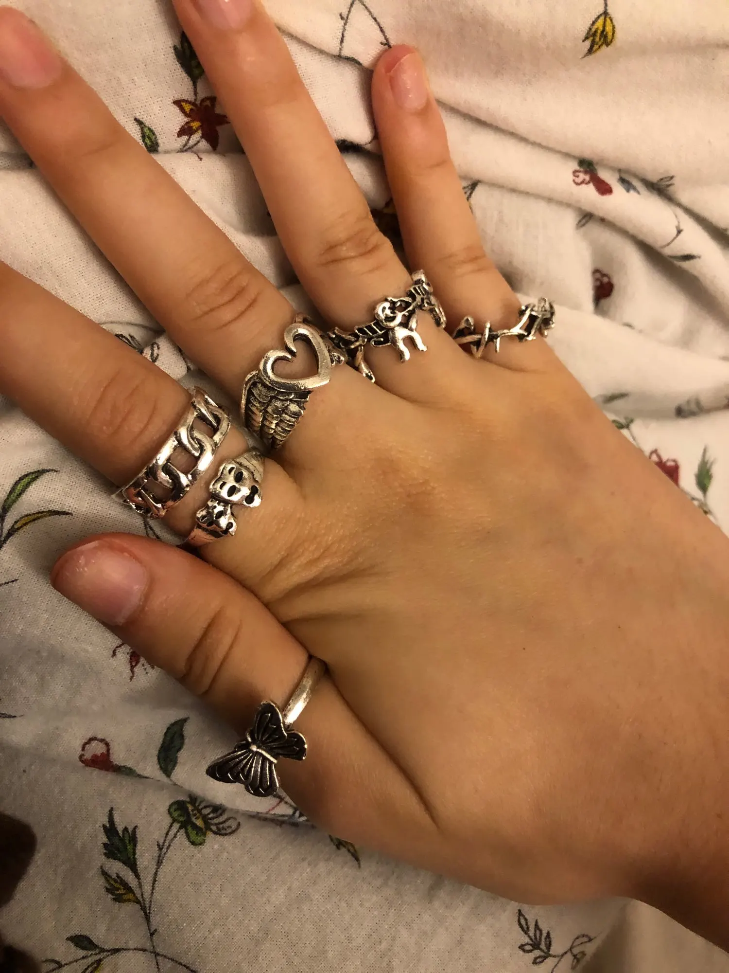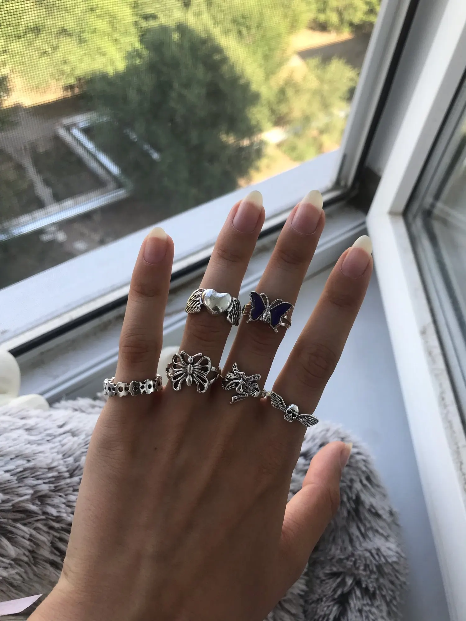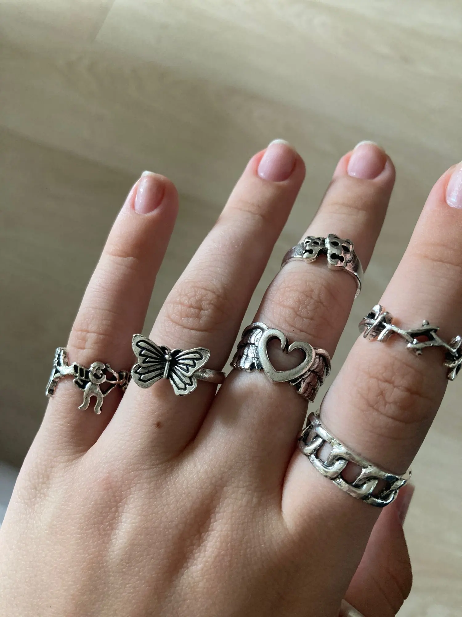 Винтажные посеребренные кольца кольцо с крыльями ангела для женщин, Наборы украшений для вечеринок в стиле готика, панк, стимпанк, сердца, бабочки, черепа, 2021
