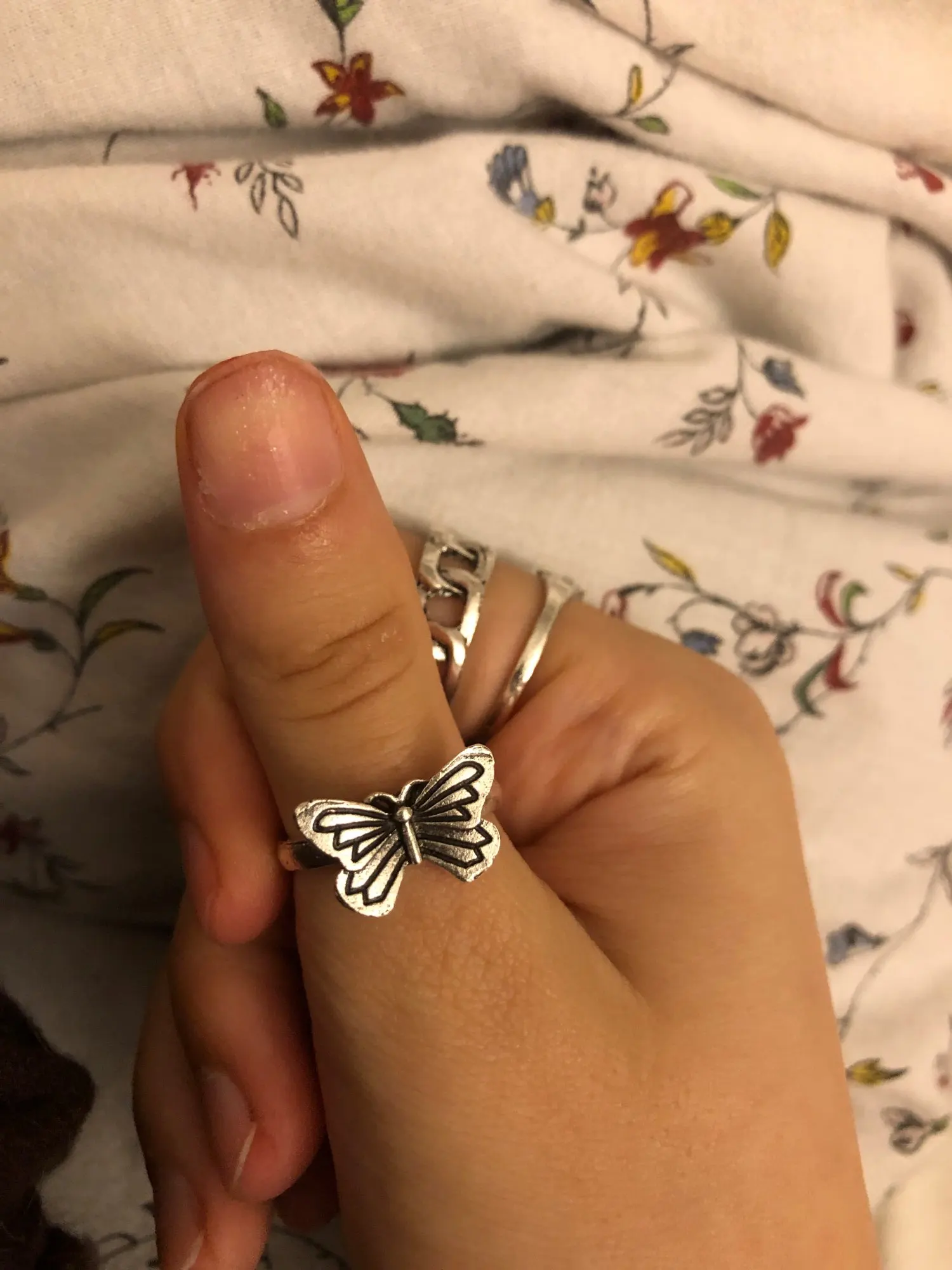 кольцо с бабочкой быстро окислилось,и сломалось от частых деформаций металла. сердечко с крыльями хорошее.