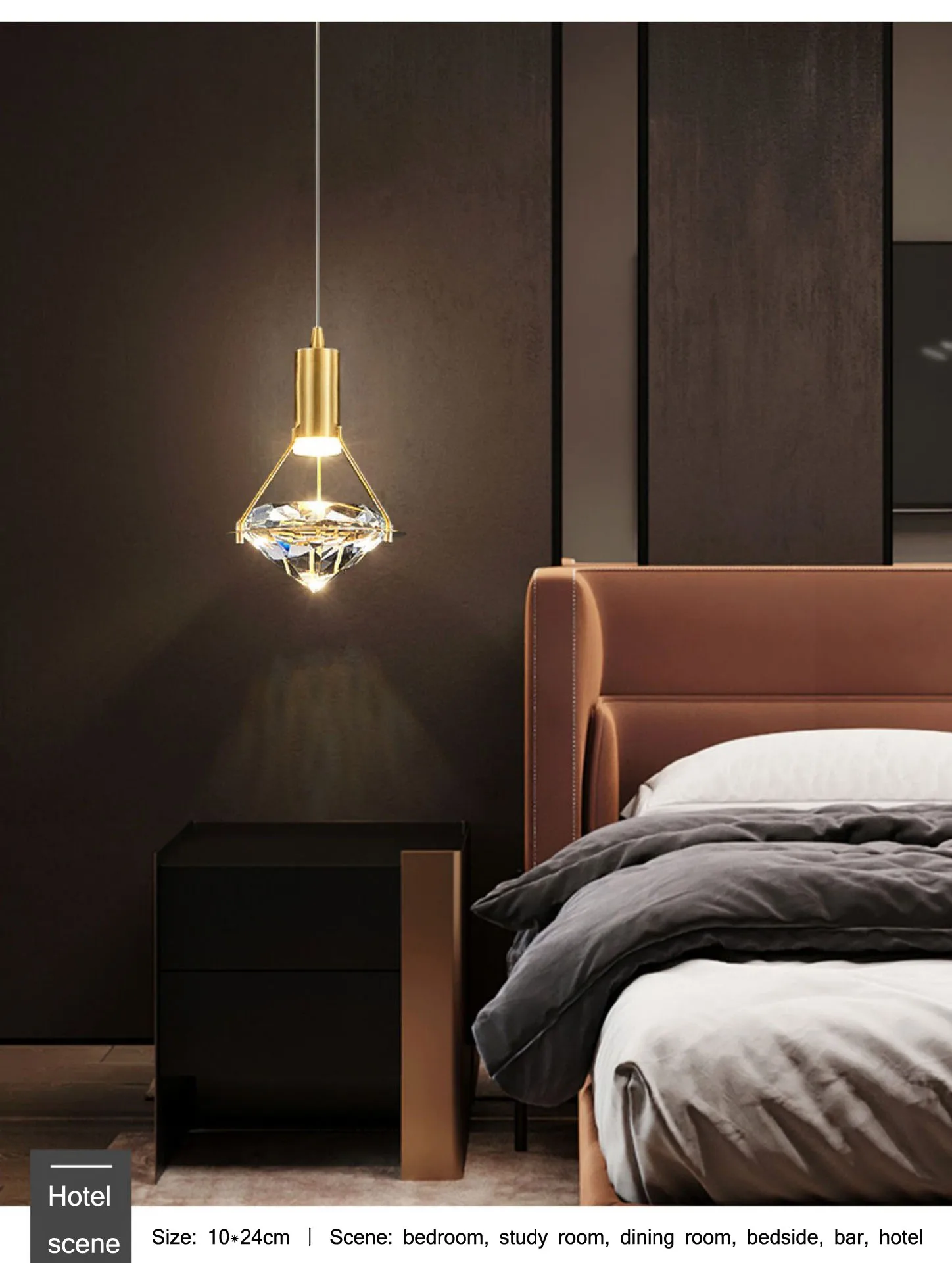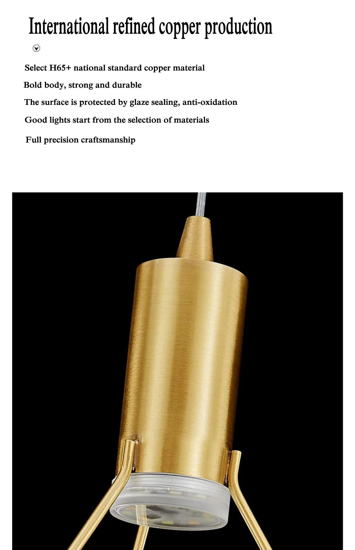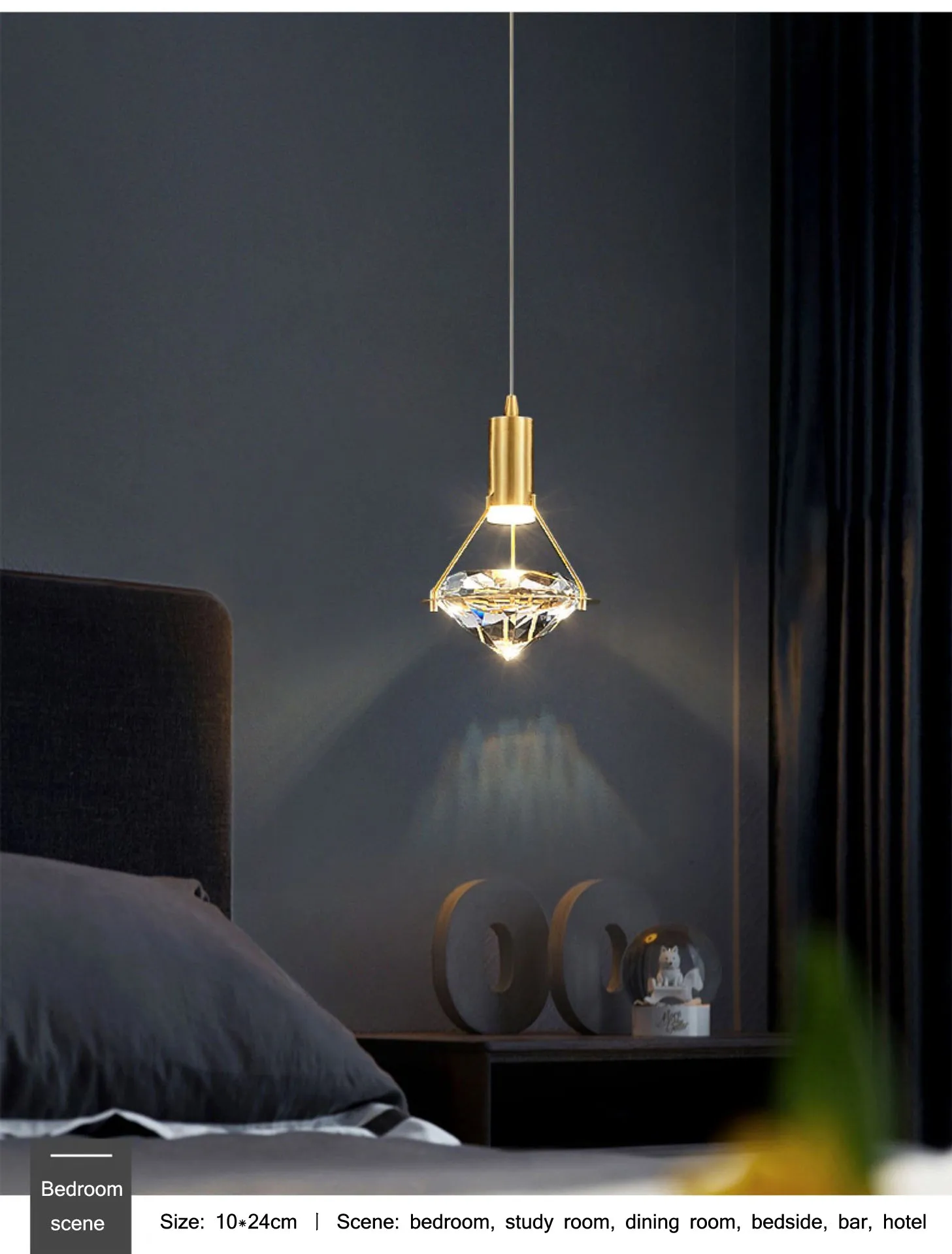 Медная прикроватная люстра для спальни, в современном минималистическом стиле, в стиле постмодерн, для ресторана, бара, в скандинавском стиле, Хрустальная люстра