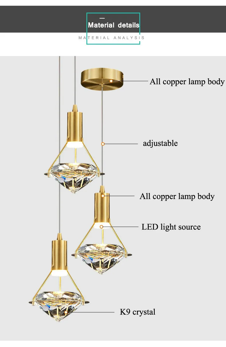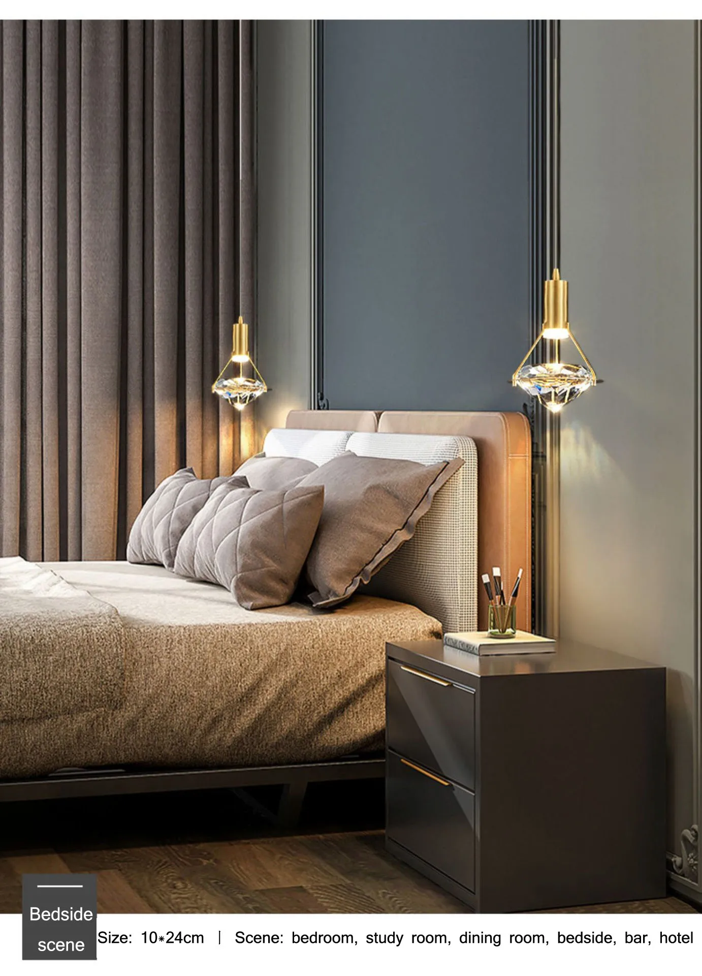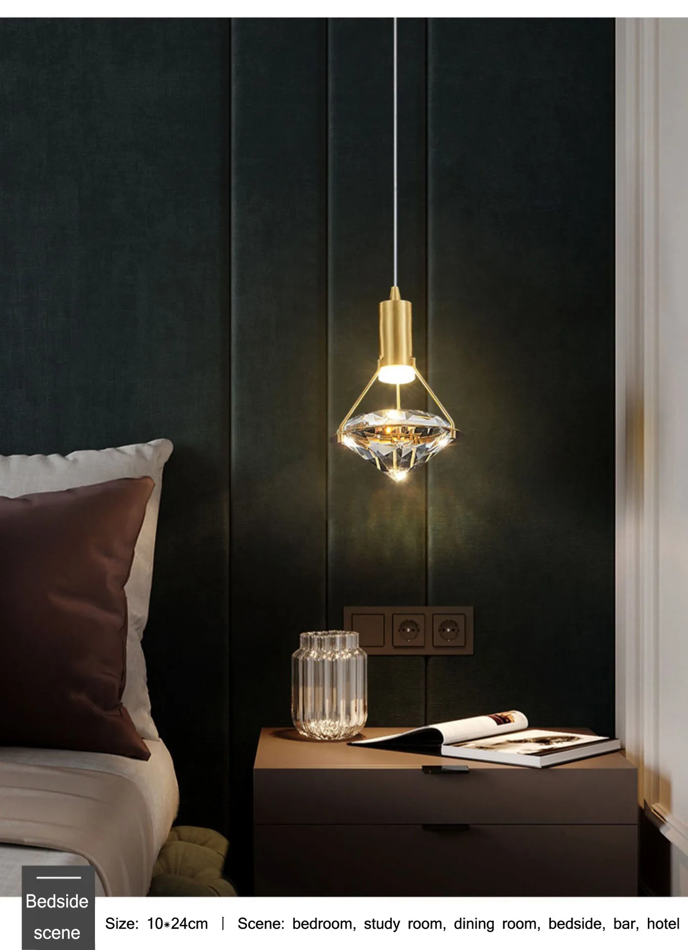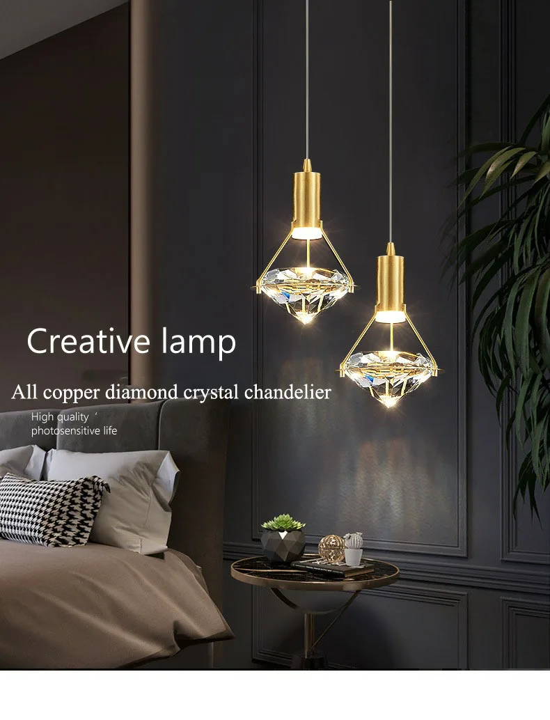 Медная прикроватная люстра для спальни, в современном минималистическом стиле, в стиле постмодерн, для ресторана, бара, в скандинавском стиле, Хрустальная люстра