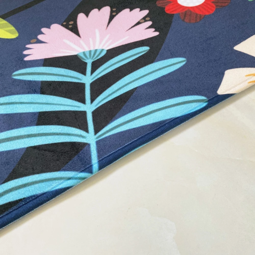 1. Мягкие и удобные, экологически чистые и дышащие, и могут непосредственно контактировать с кожей.2. Противоскользящий, пыленепроницаемый, водопоглощающий, устойчивый к истиранию, устойчивый к коррозии, устойчивый к морщинкам.3. Легко чистить, можно мыть непосредственно стиральной машиной или вручную, не выцветая.4. Рисунок продукта принимает экологически чистые печати и окрашивания, без специфического запаха, без вредных веществ.5. Область применения: кухня, дверь, прихожая, гостиная, спальня, вход, прикроватная кровать, ванная комната, балкон.
