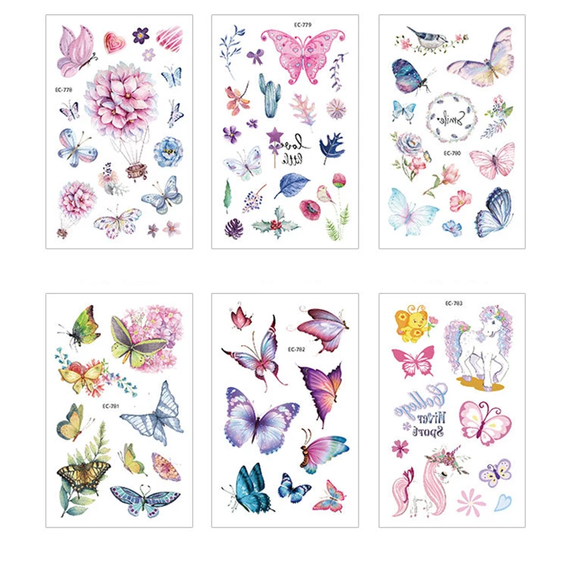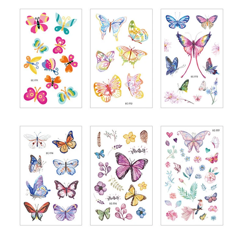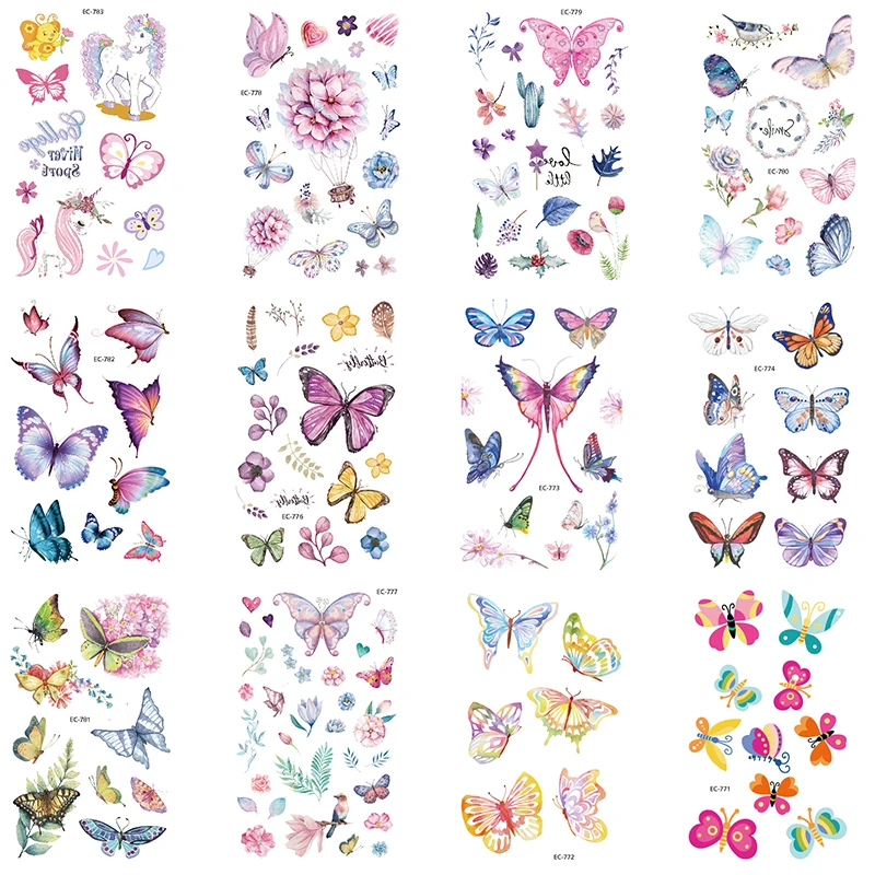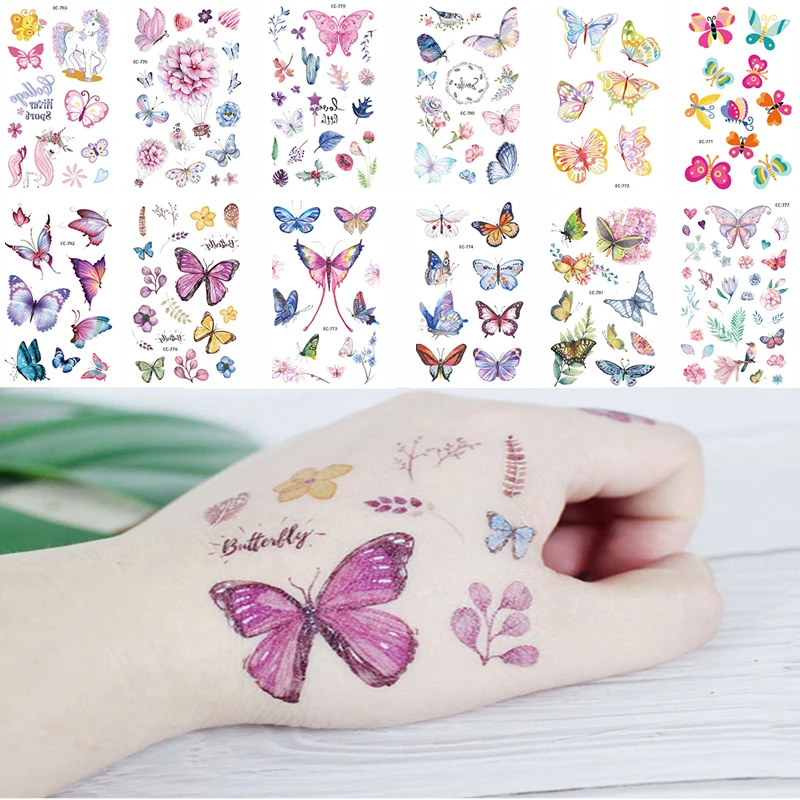 12 шт., водостойкие тату-наклейки бабочка