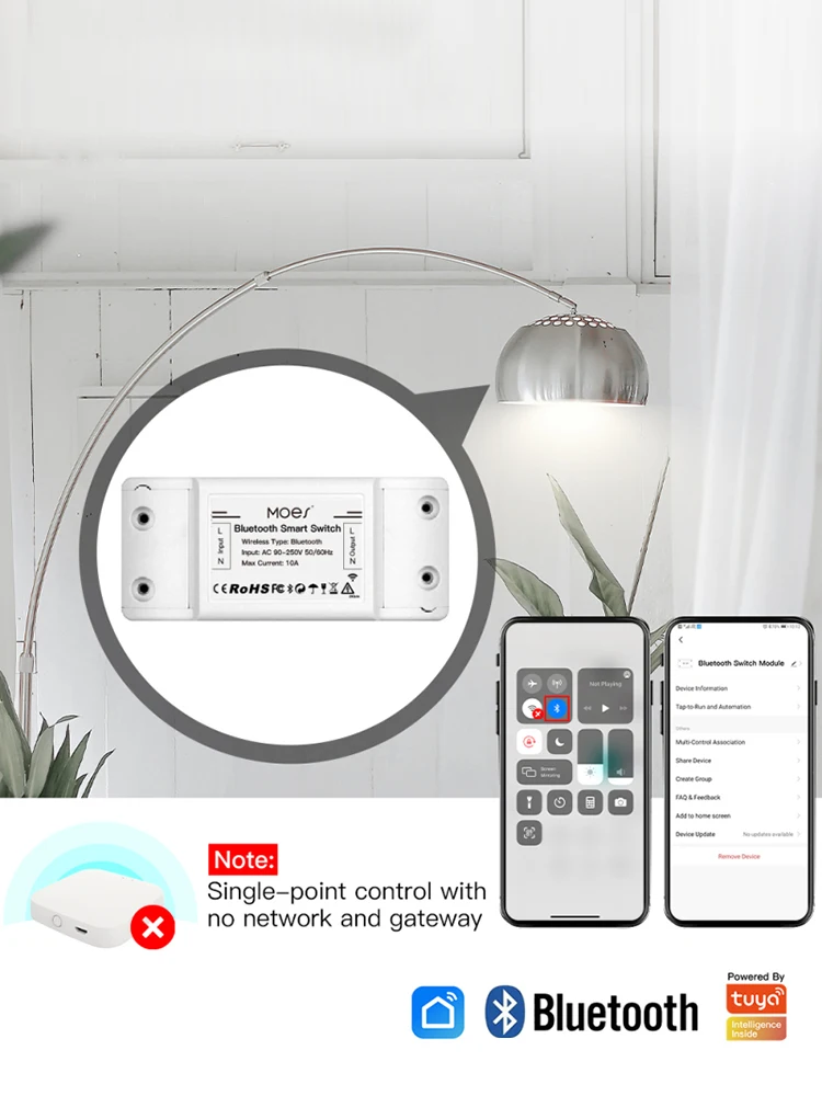 2. Беспроводной пульт дистанционного управления и Голосовое управление Alexa Google Home доступны при подключении шлюза Bluetooth, одно нажатие-для подключения модуля переключателя к шлюзу Bluetooth для различных интеллектуальных функций; мультиконтрольная ассоциация включена в приложении Smart Life еще одним способом управления без помех.
